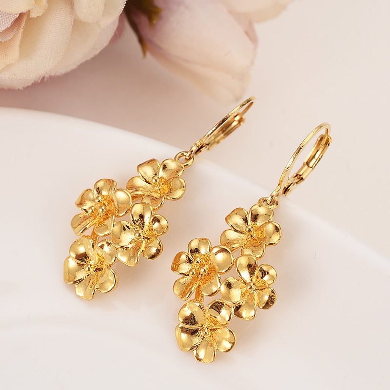 Afraic Jewelry-24k gold flower drop earring Ethiopian/Nigeria/Kenya /Ghana Gold color Dubai african Arab Middle Eastern Jewelry Mom girl Gifts