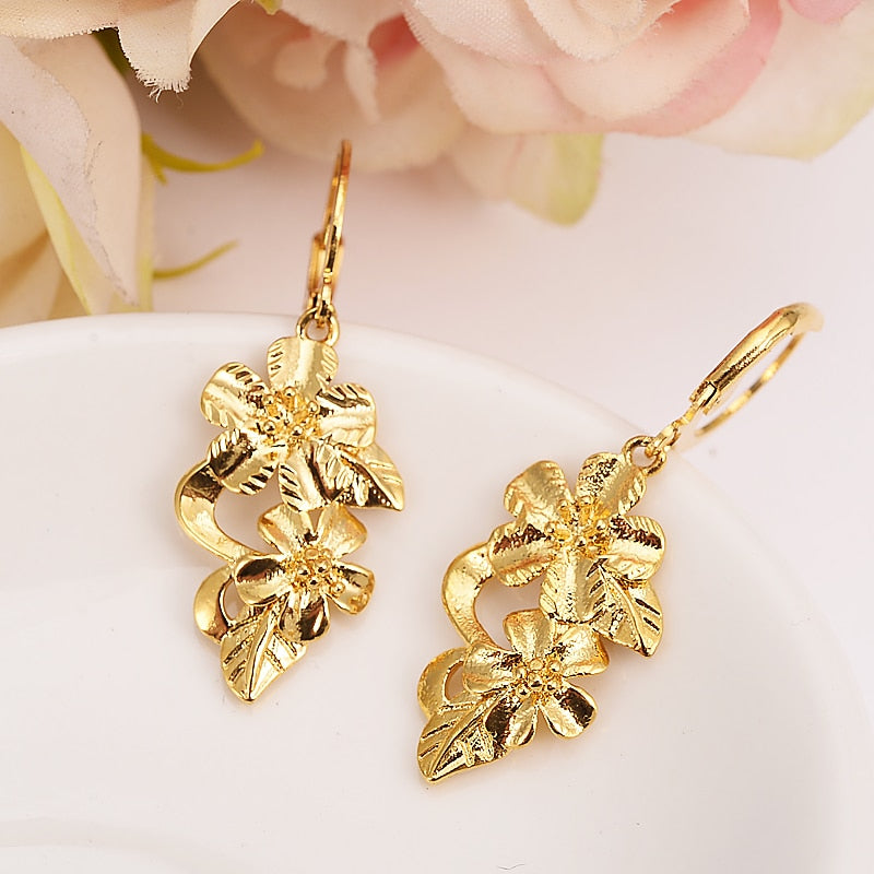 Afraic Jewelry-24k gold flower drop earring Ethiopian/Nigeria/Kenya /Ghana Gold color Dubai african Arab Middle Eastern Jewelry Mom girl Gifts