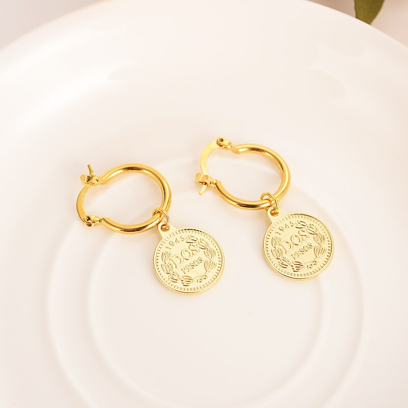 24k gold jewe gold earrings women Ten Cents Coin Sea Spirit Ngoreru Elizabeth gift girl