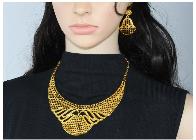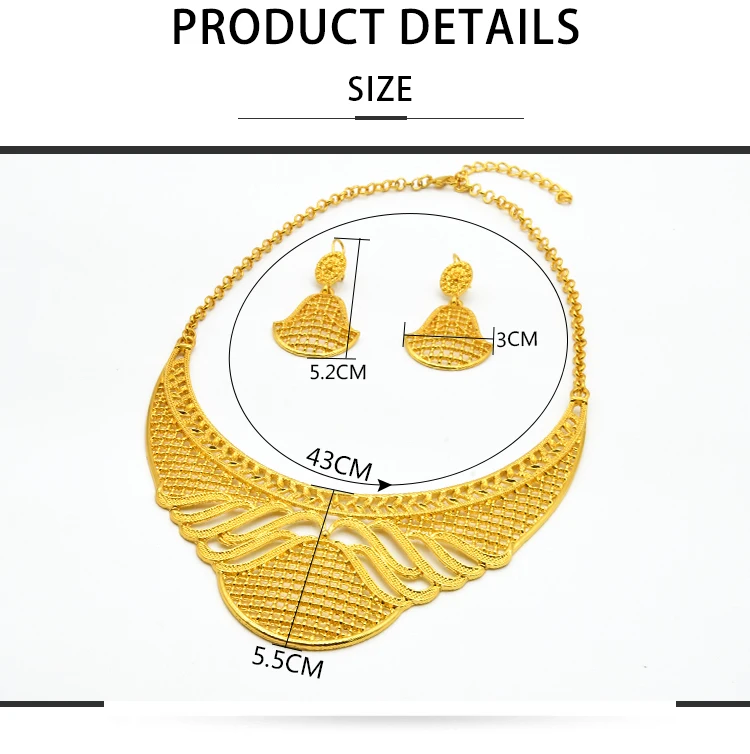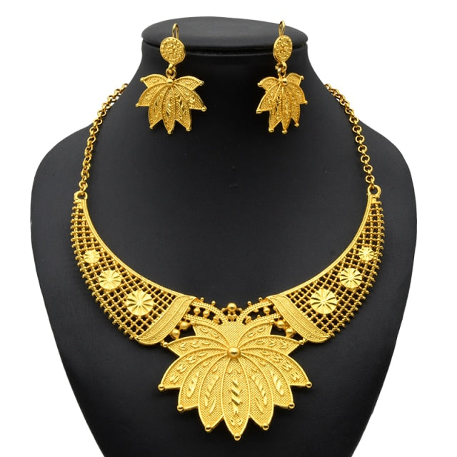 Nigerian Gold Jewelry Sets Wedding Necklace And Earrings 24K Gold Jewellery Bridal Indian Dubai Luxury Sets Party Gifts