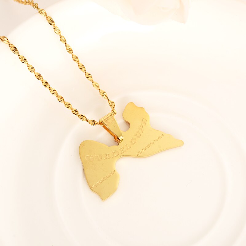 Afraic Jewelry-24k Gold Map of Guadeloupe sweater chain Necklace earrings women girls boy men party Trendy Jewelry set Gifts kids daily wear