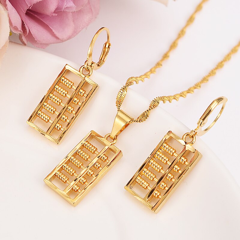 Afraic Jewelry-24K gold Necklace Earring Set Women Party Gift abacus Jewelry Sets daily wear mother gift DIY charms women girls Fine kidsJewelry