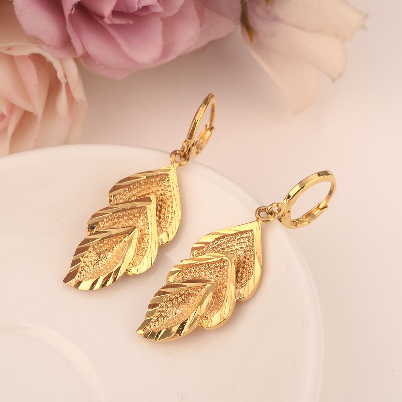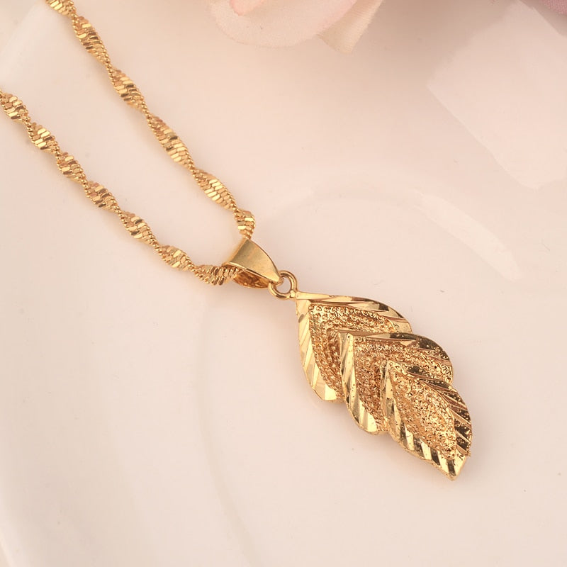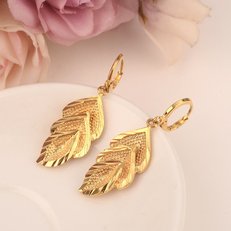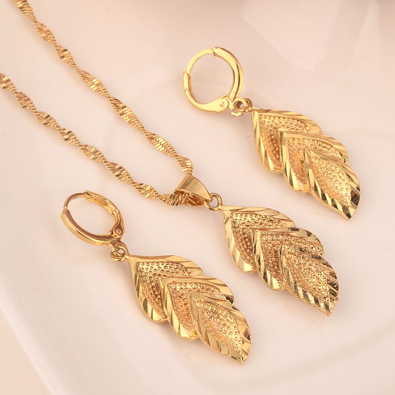 24k gold Necklace Earring Set Women Party Gift big Leaf Jewelry Sets daily wear mother gift
