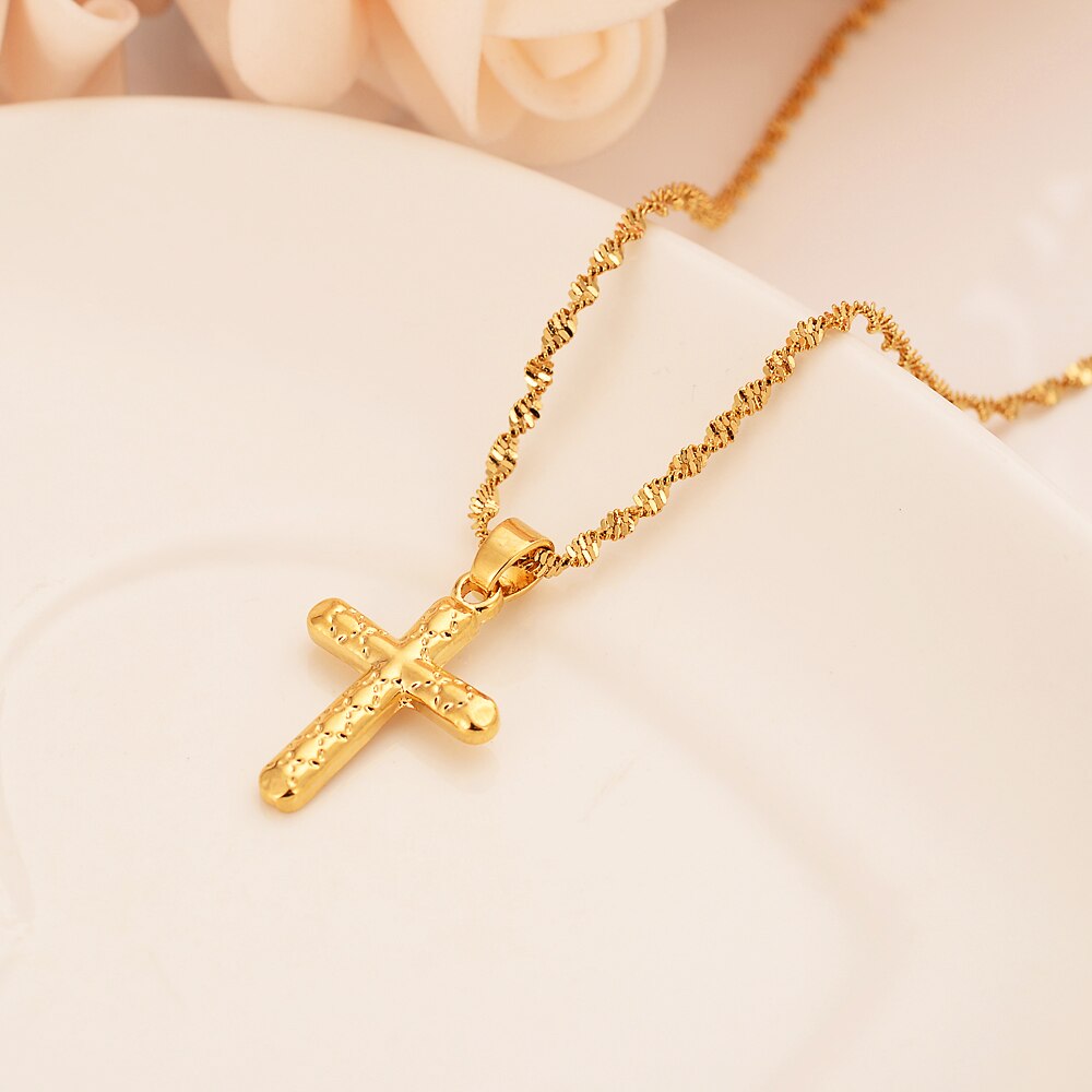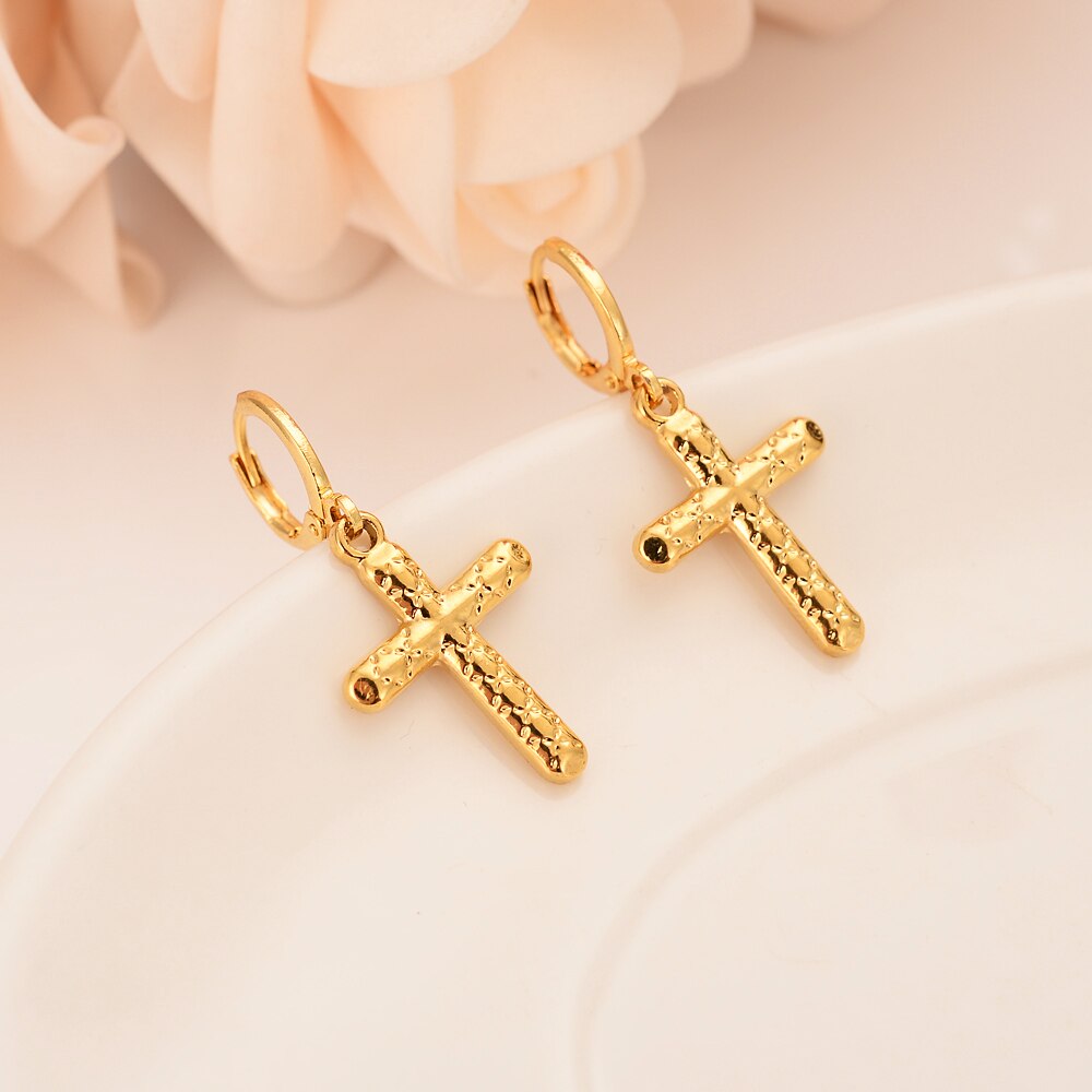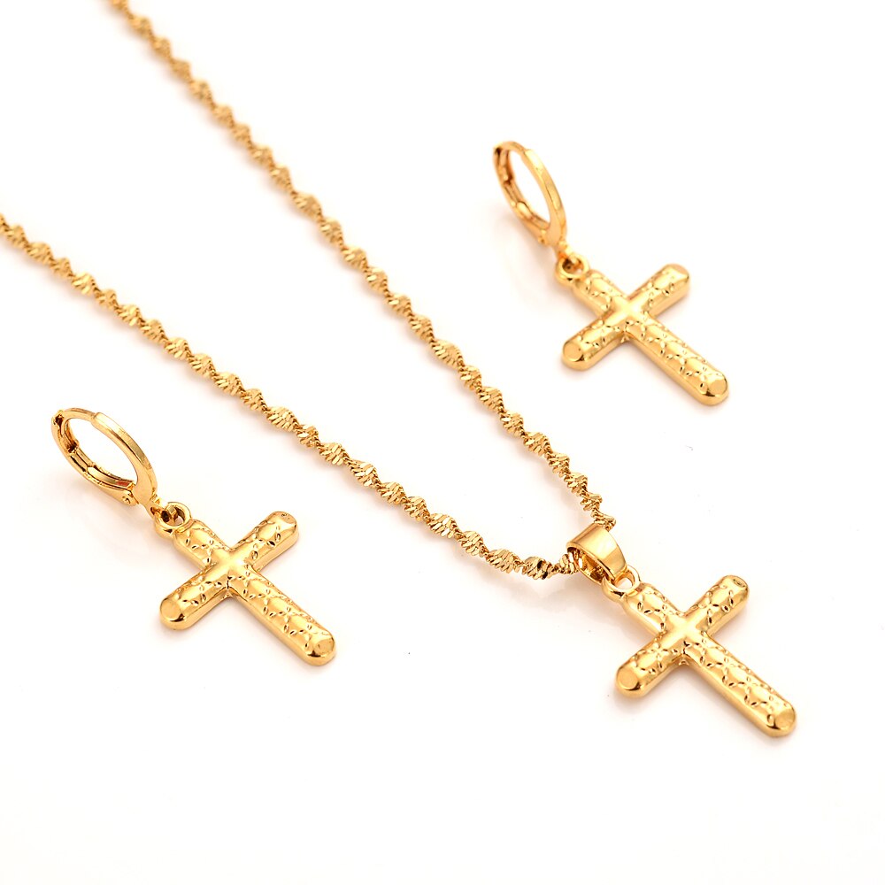 24k gold small cross Pendant Necklace chain Earrings sets Jewelry Gold Christian jewelry sets