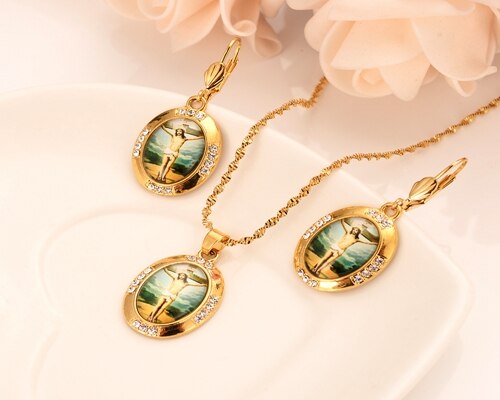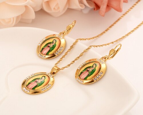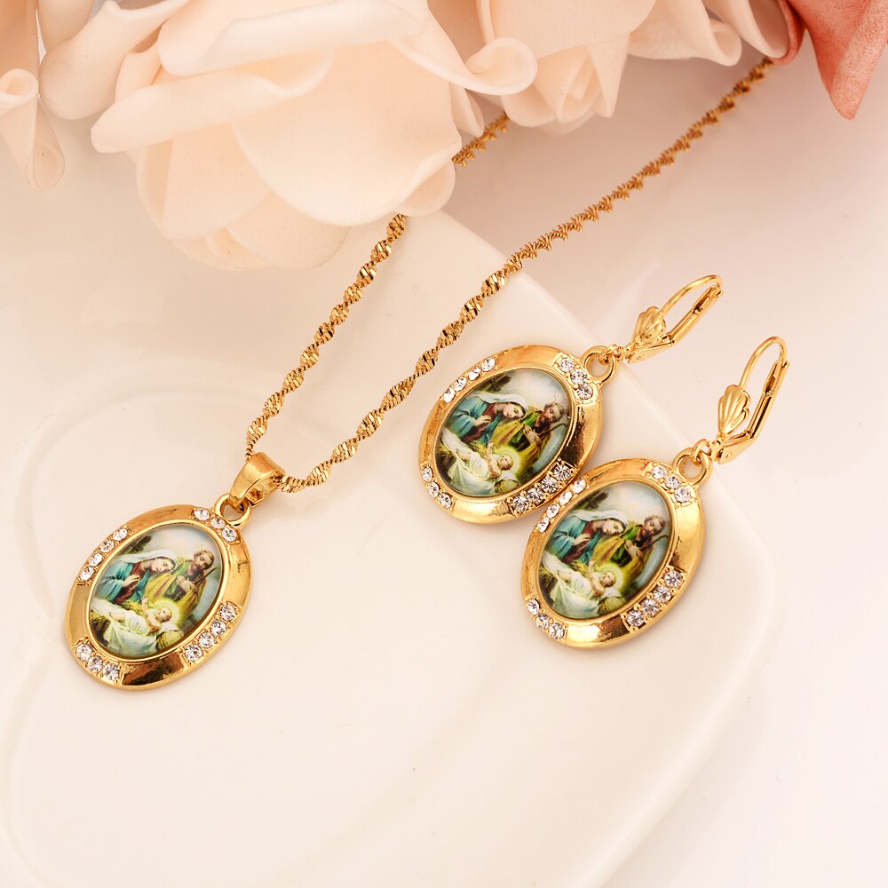 Afraic Jewelry-24k Gold Virgin Mary religions Jewelry Set Trendy Our Lady Women Men party czJewelry Cross Pendant earring Set for women girls gift