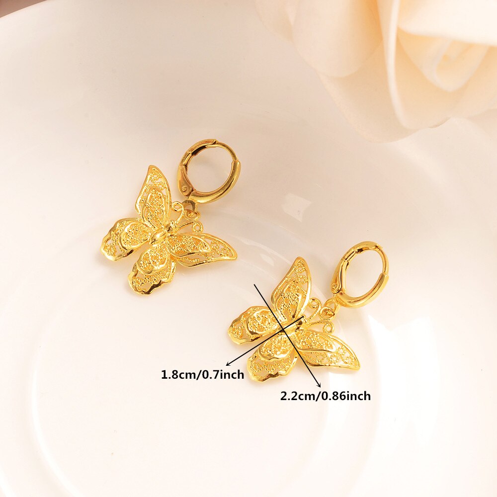 Afraic Jewelry-24K high quality Butterfly Earrings Women Girls Gold Color Earring Jewelry Charm Butterfly Earing Mama Gift