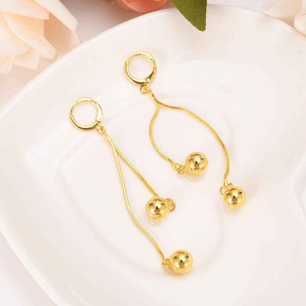 Afraic Jewelry-24K high quality Fashion Gold Filled Women's Drop Earring Dangle Earring Charms Jewelry beads Earrings brincos Vintage girls