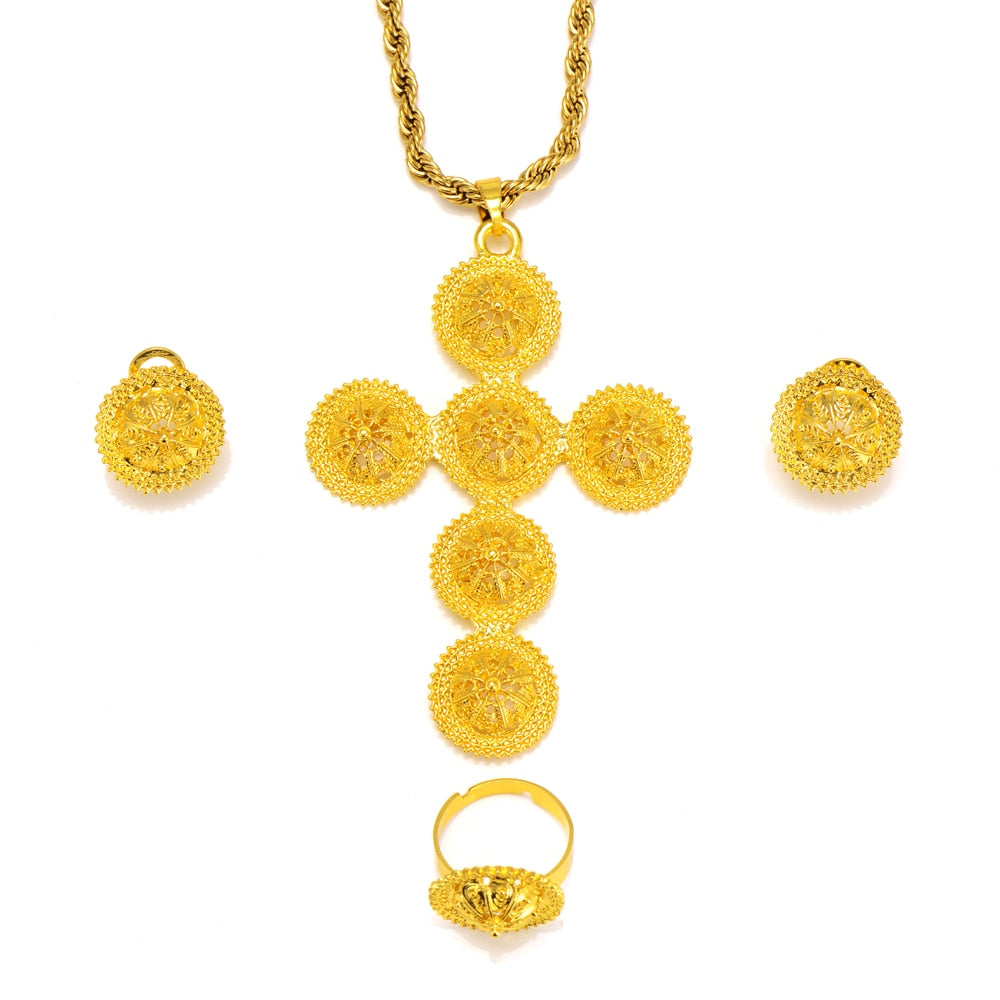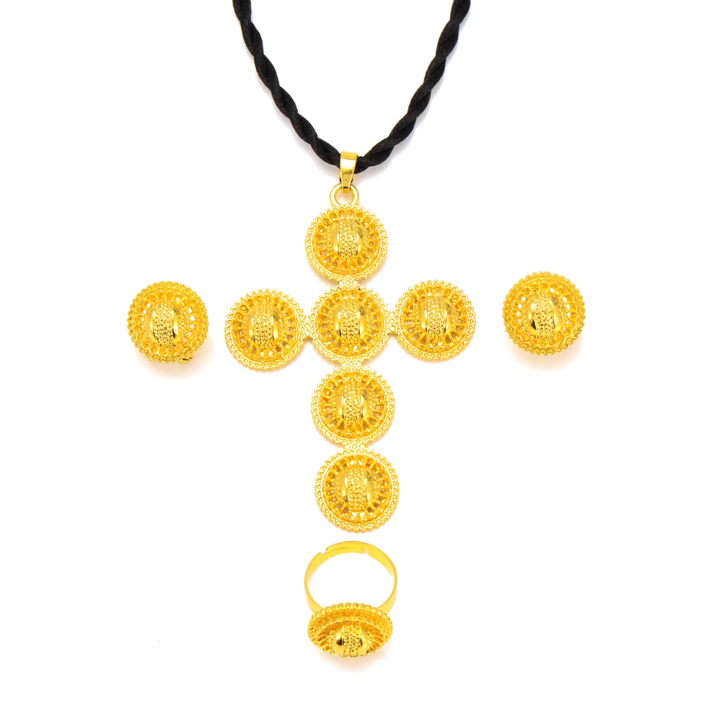 Afraic Jewelry-24k High Quality Gold Color Ethiopian Jewelry Sets Necklace Bracelet Earrings Ring Dubai Wedding Bride Habesha African Items Gift