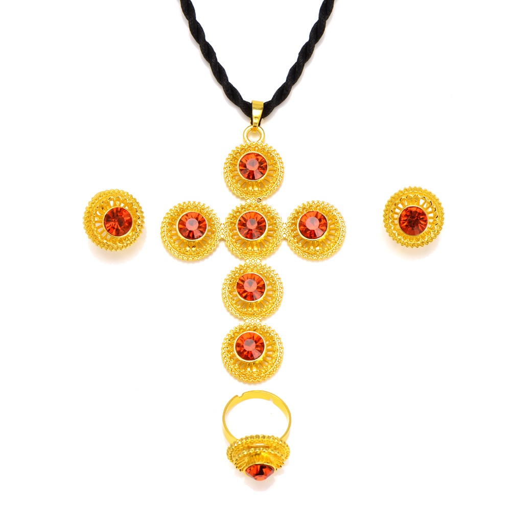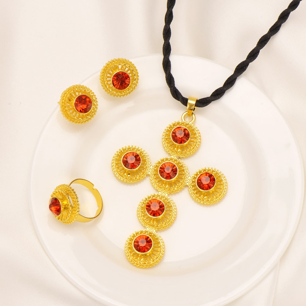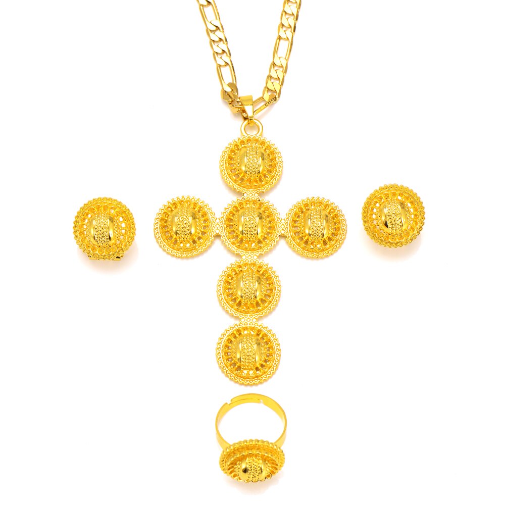 24k High Quality Gold Color Ethiopian Jewelry Sets Necklace Bracelet Earrings Ring