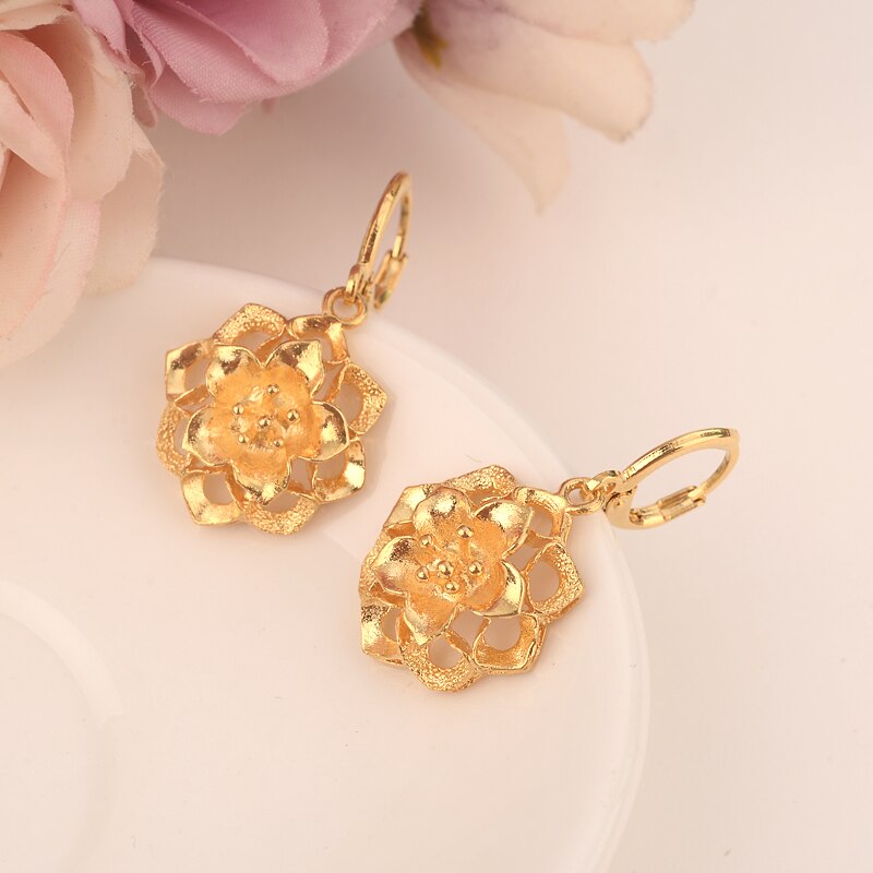 24k hot flower drop earring DubaiArab african Arab Middle Eastern Jewelry Mom Gifts