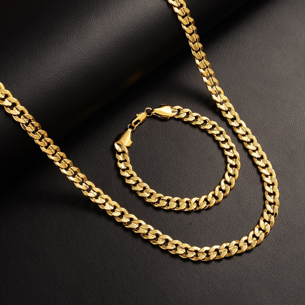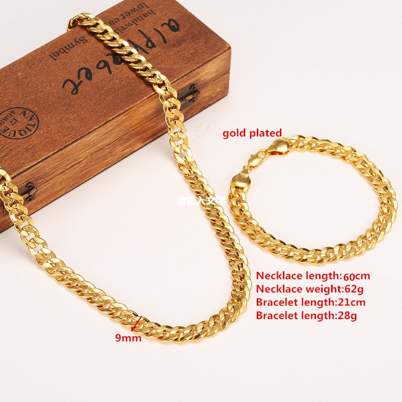 24k New big chunk gold 60cm Necklace 21cm bracelet Trendy 9MM Width Cuban Chain Men Necklace Bracelet