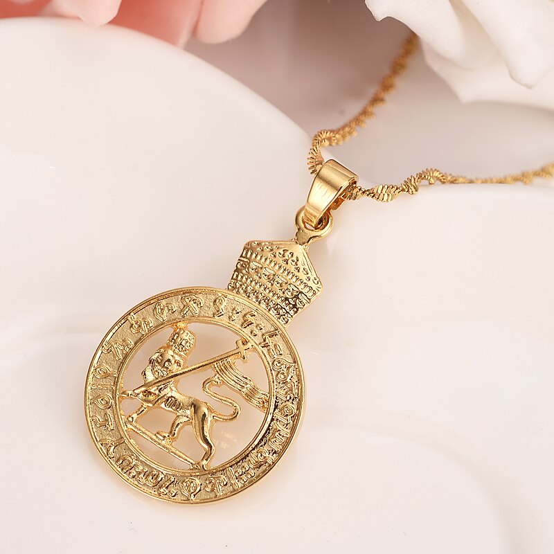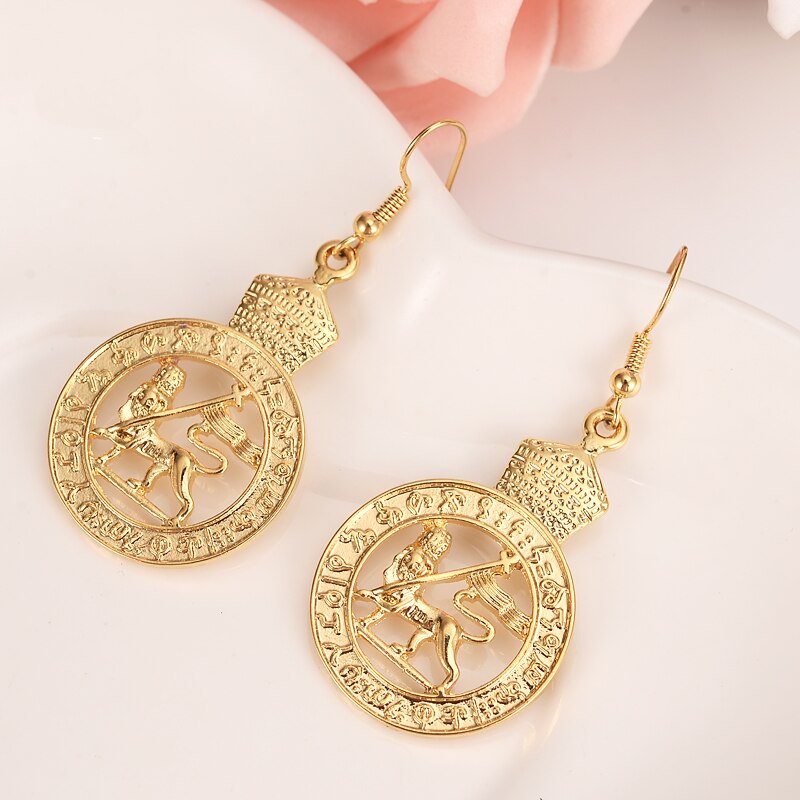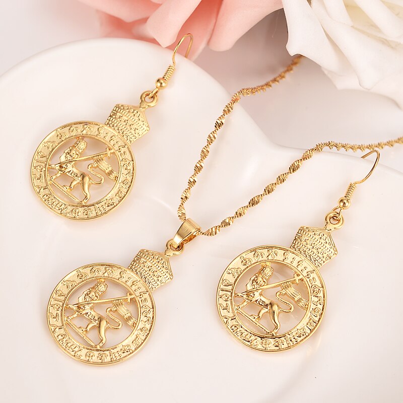 24k New Ethiopian Lion of Judah Pendant Earrings Gold Color Africa Eritrea Ethnic Lions party Jewelry Set