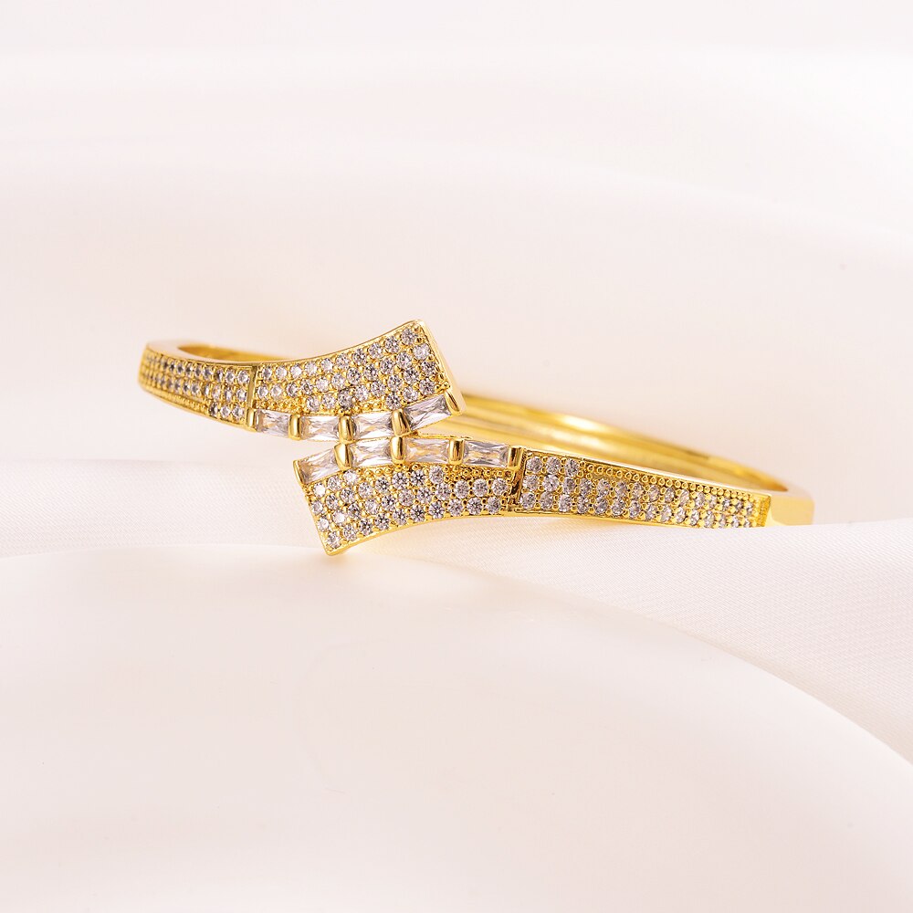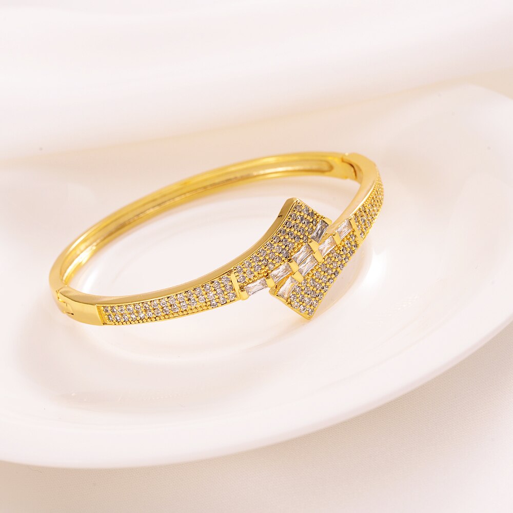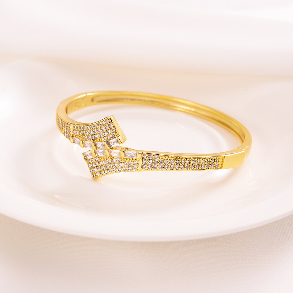 Afraic Jewelry-24K Trend Fashion Korea Simple Micro Inlaid Diamond Word Lady Bracelets for Women Temperament Exquisite Luxury Bangle Jewelry
