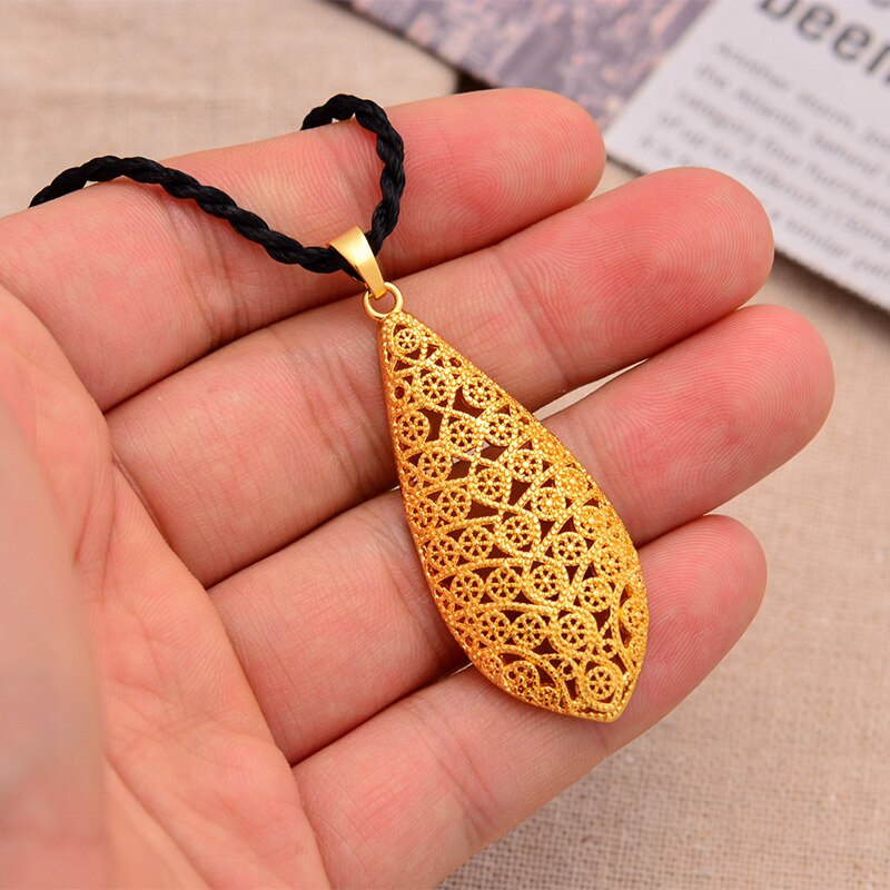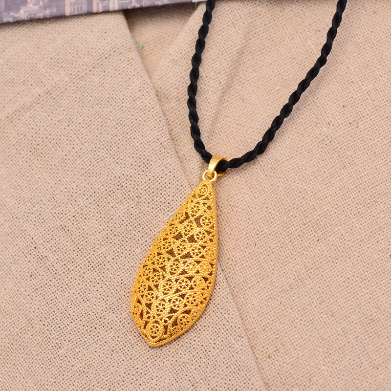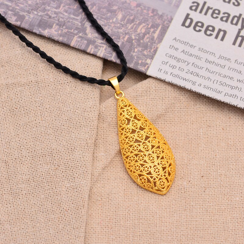 Afraic Jewelry- 24K Water drop Ethiopian Gold Color Necklace pendant For Man Women Wedding Chain Bride Jewelry Middle East African Bride Gifts