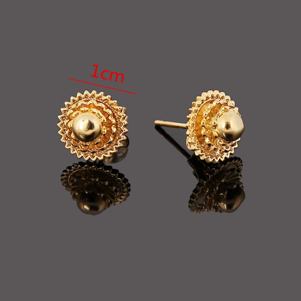 Afraic Jewelry-2pairs gold color Earrings Ball Women Girl Jewelry Fashion Gold color Jewellry Ethiopia,Sphere Round Earring yellow gold GP