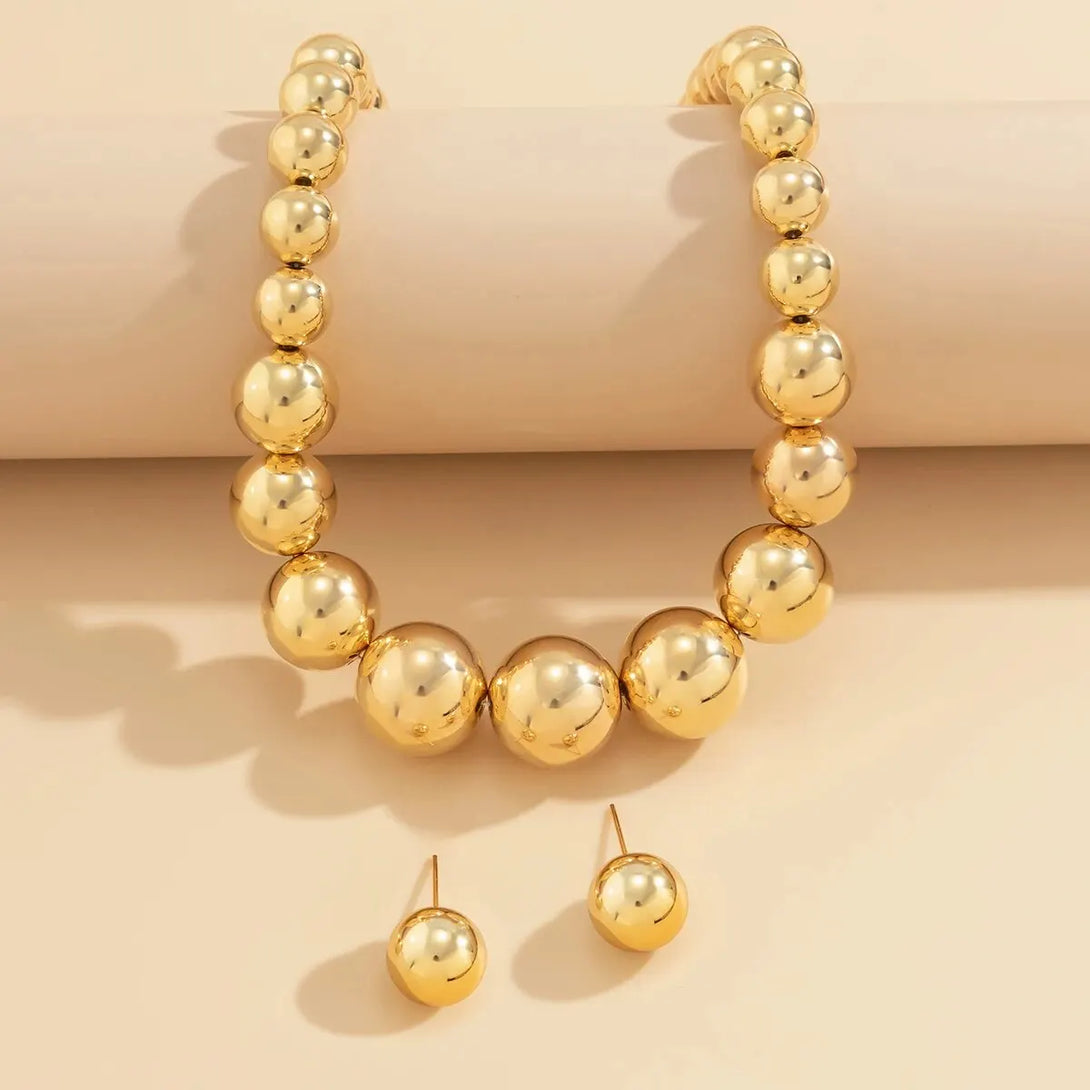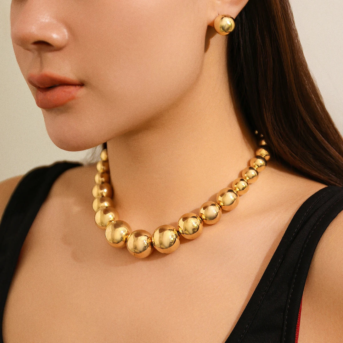 2Pcs Exaggerated Gold Color Big Beads Necklace Stud Earrings for Women