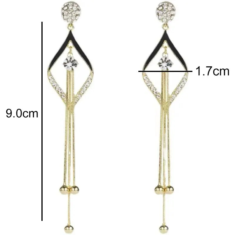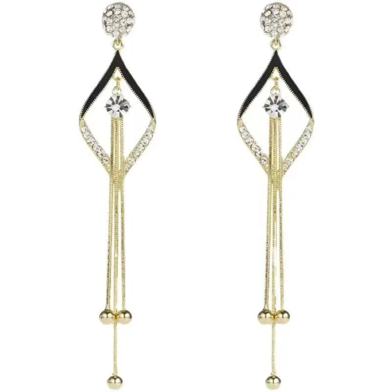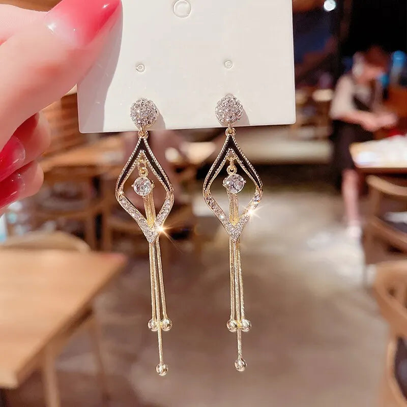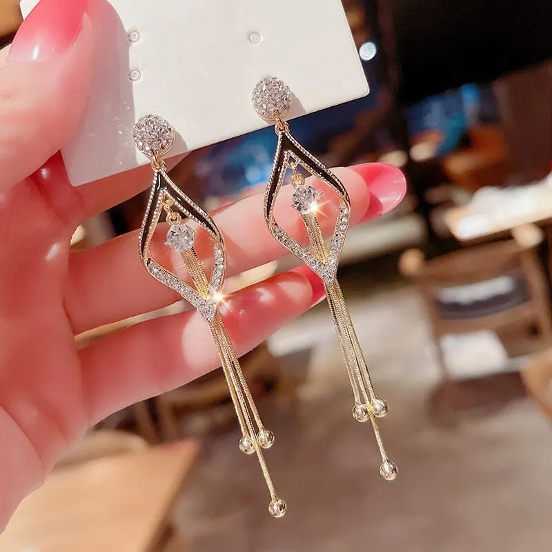 2PCS Gold-Color Long Tassel Dangle Earrings For Women Fashion Exquisite Hollowed Rhinestone Tassel Earrings Jewelry Gift