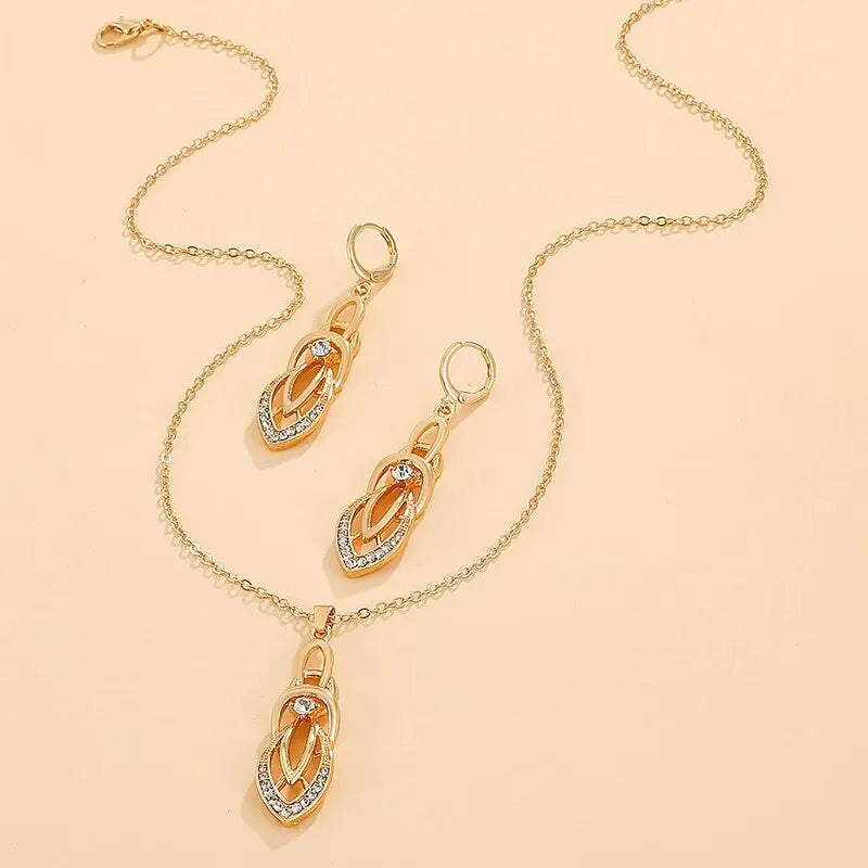 2PCS Vintage Geometric Shiny Zircon Jewelry Set Exquisite Pendant Necklace Hoop Earrings