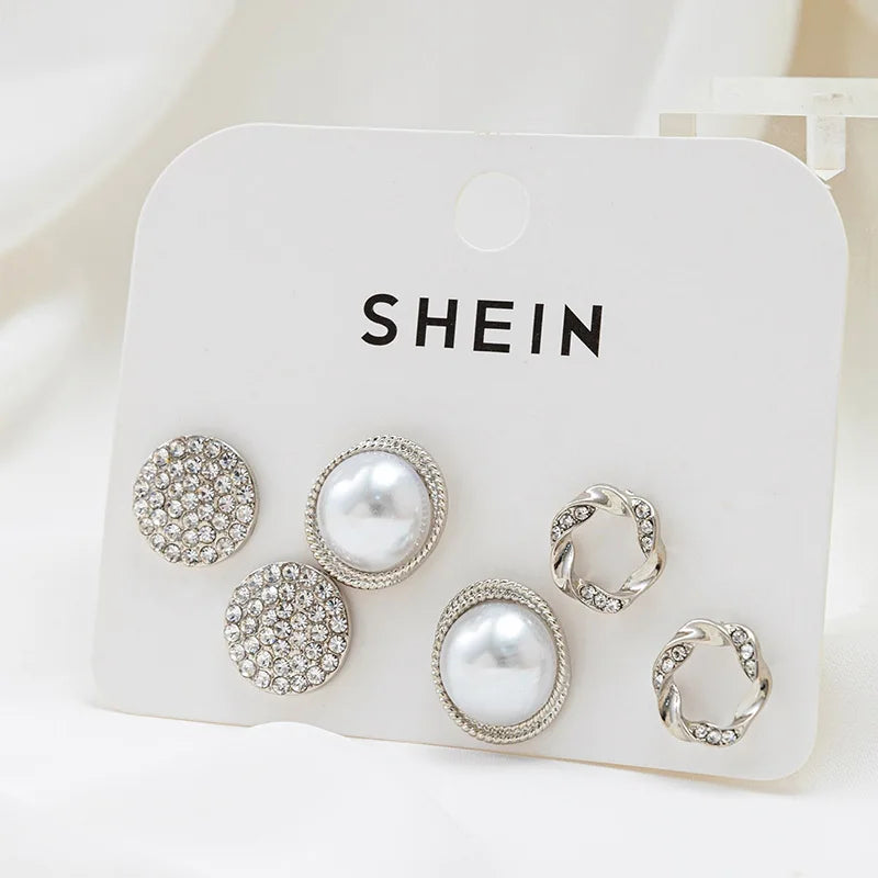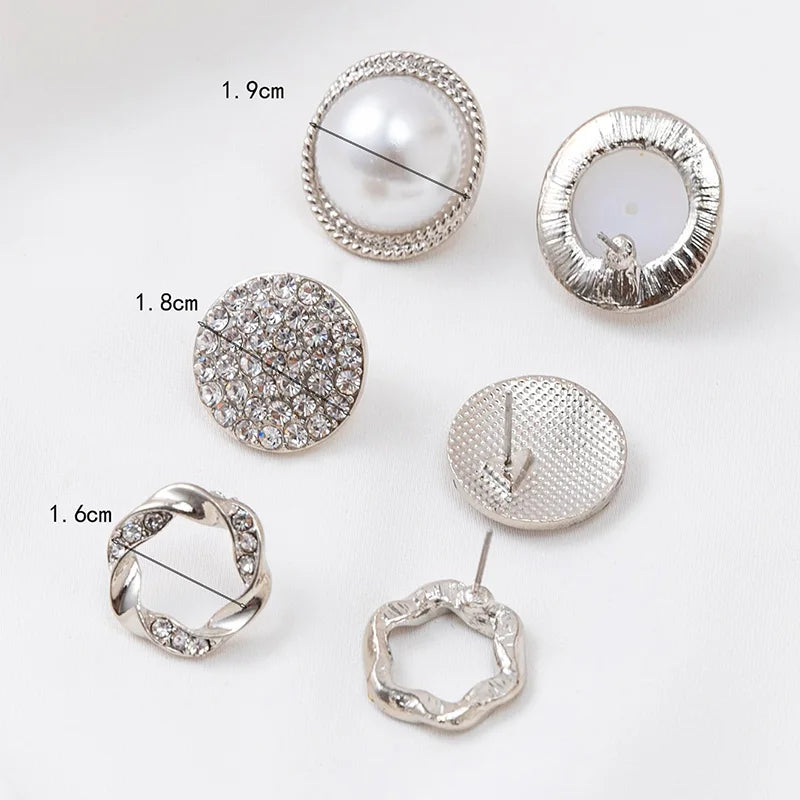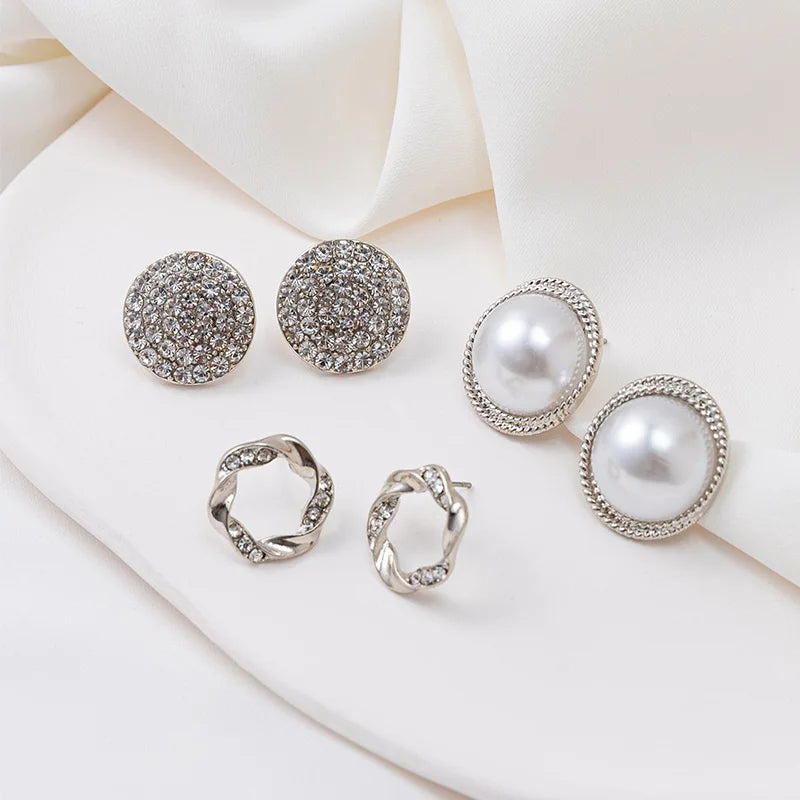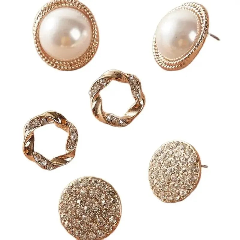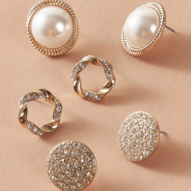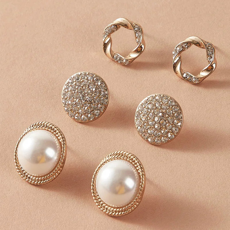 3 Pairs Stud Earrings For Woman Girly Round Shape With Sparkling Rhinestones Gold-Color Temperament Fine Jewelry Ballet Fantasy