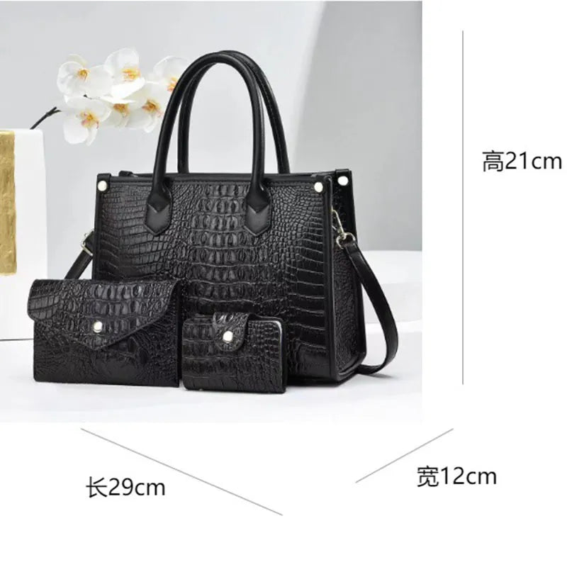 3 Pieces Sets Shoulder Bag for Women Retro Crocodile Pattern High Quality Leather Luxury Designer Crossbody Commute Tote Handbag