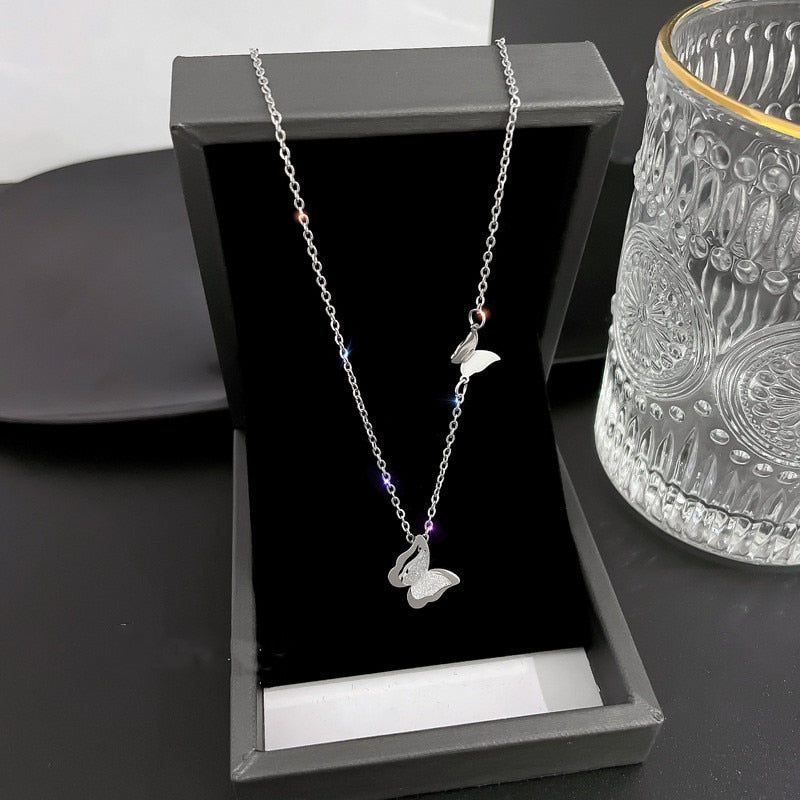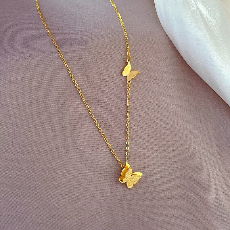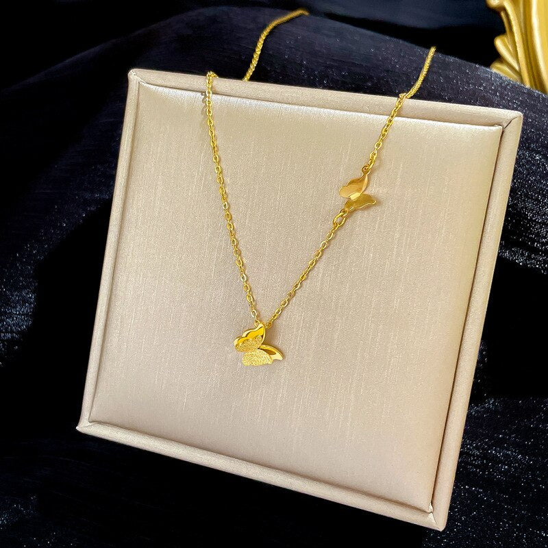 585 Gold Jewelry-316L Stainless Steel Charming Butterfly Pendant Necklace for Women Jewelry Chains Necklaces Luxury Choker Korea