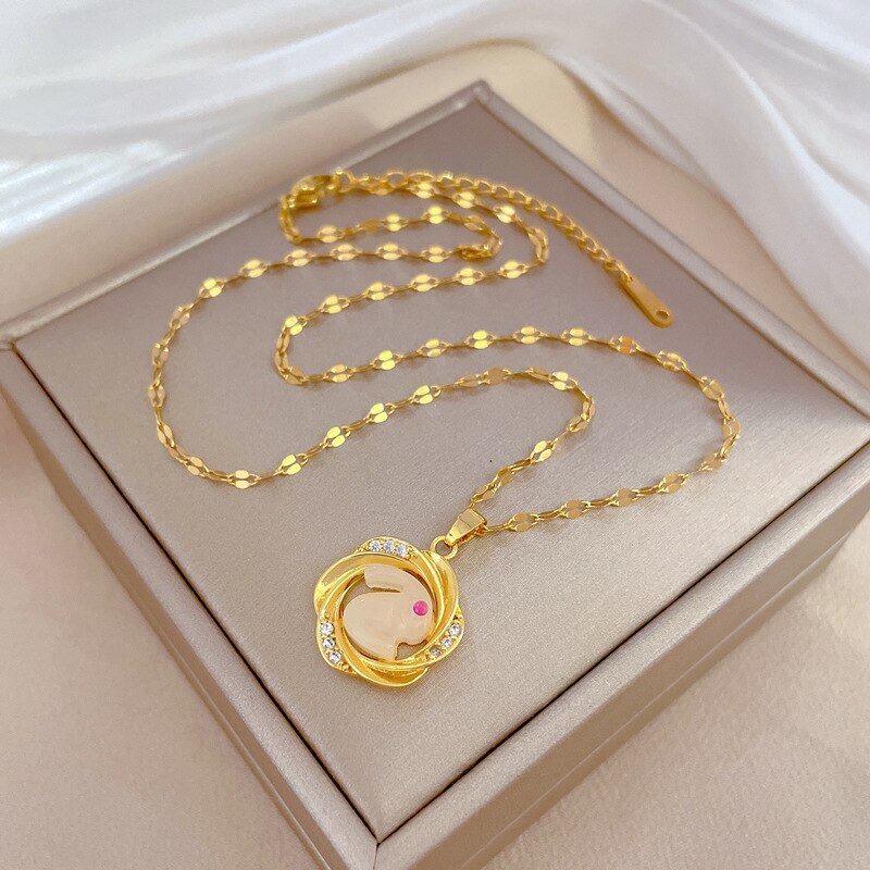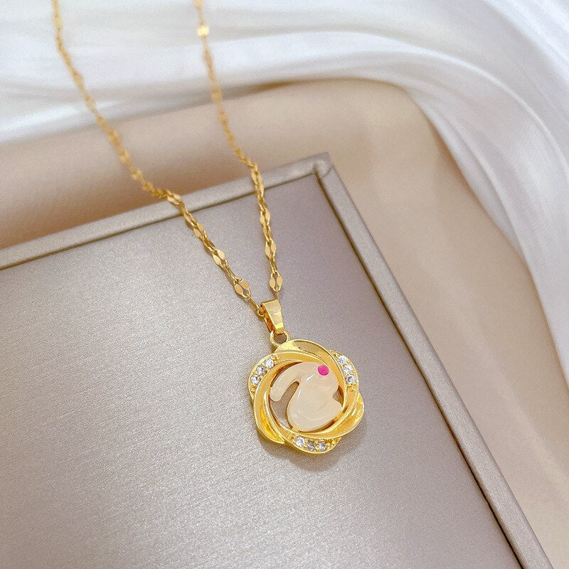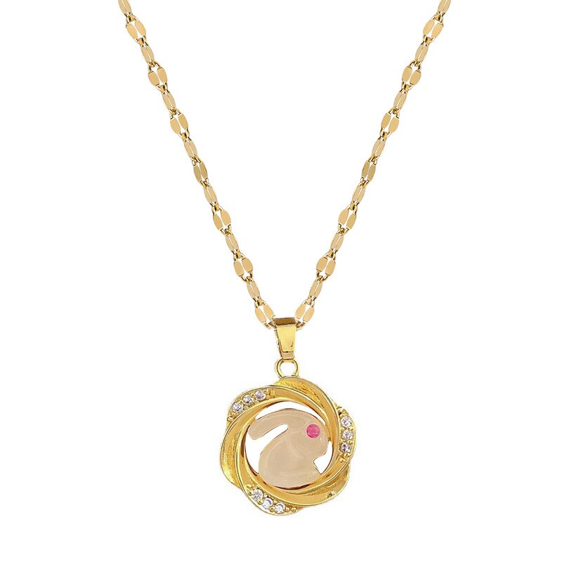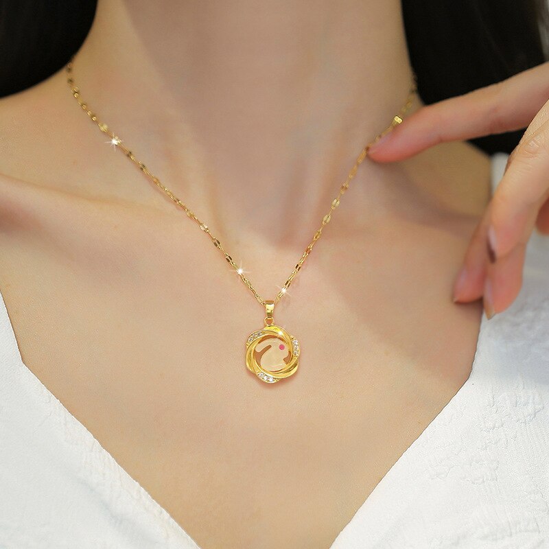 585 Gold Jewelry-316L Stainless Steel Gold Color Cute Mobius Circle Animal Rabbit Pendant Necklace For Women Girlfriend Endless Love Gifts