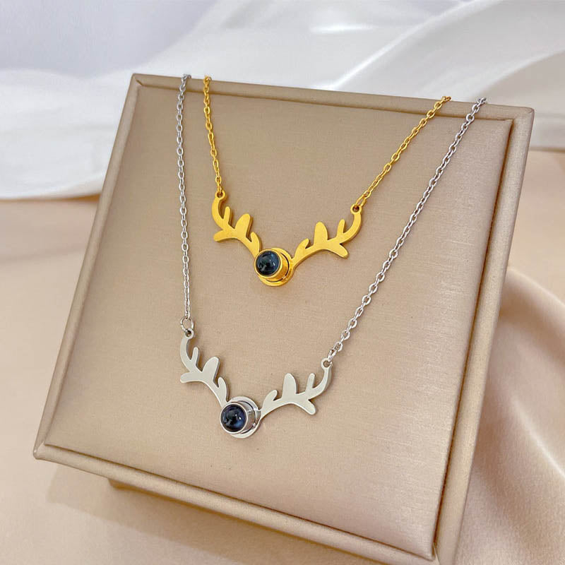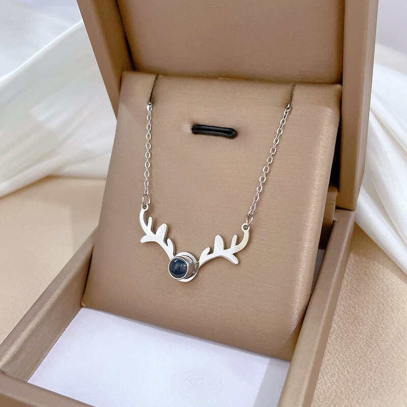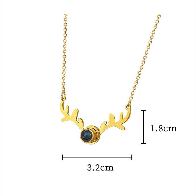 316L Stainless Steel I Love You In A Hundred Languages Projection Deer Shaped Pendant Neckalce