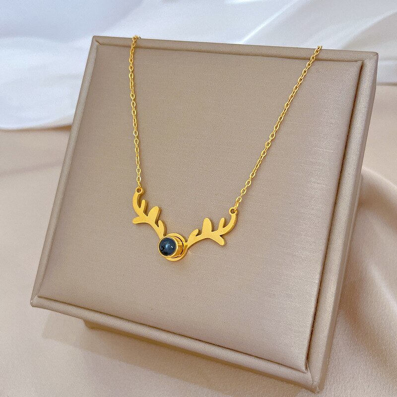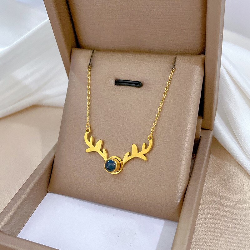 585 Gold Jewelry-316L Stainless Steel I Love You In A Hundred Languages Projection Deer Shaped Pendant Neckalce Women Anniversary Jewelry