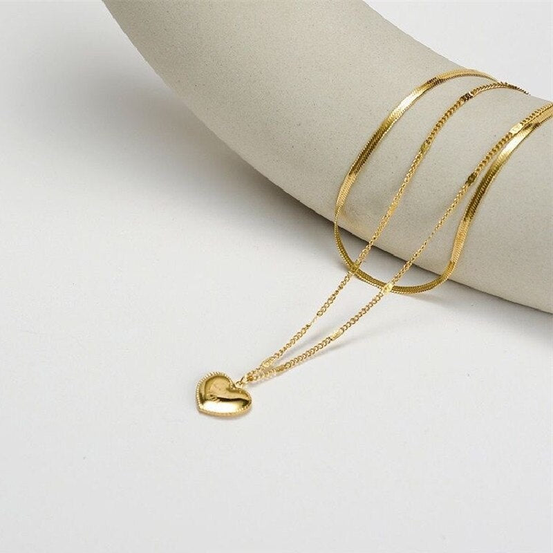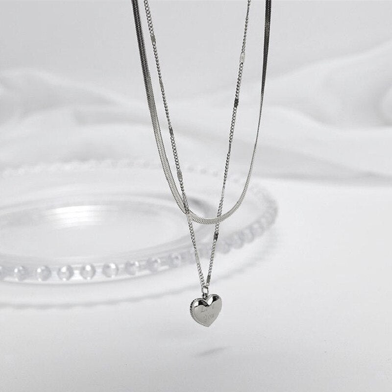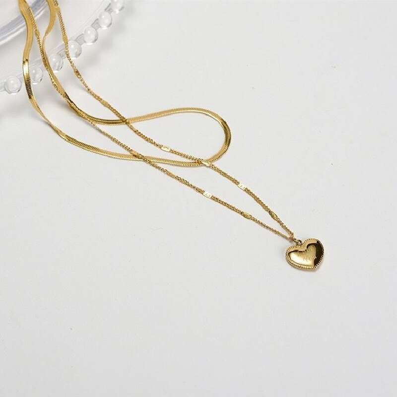 585 Gold Jewelry-316L Stainless Steel Necklace Gold Color Double Layer Heart Pendant Exquisite Accessories for Women Party Jewelry Gift