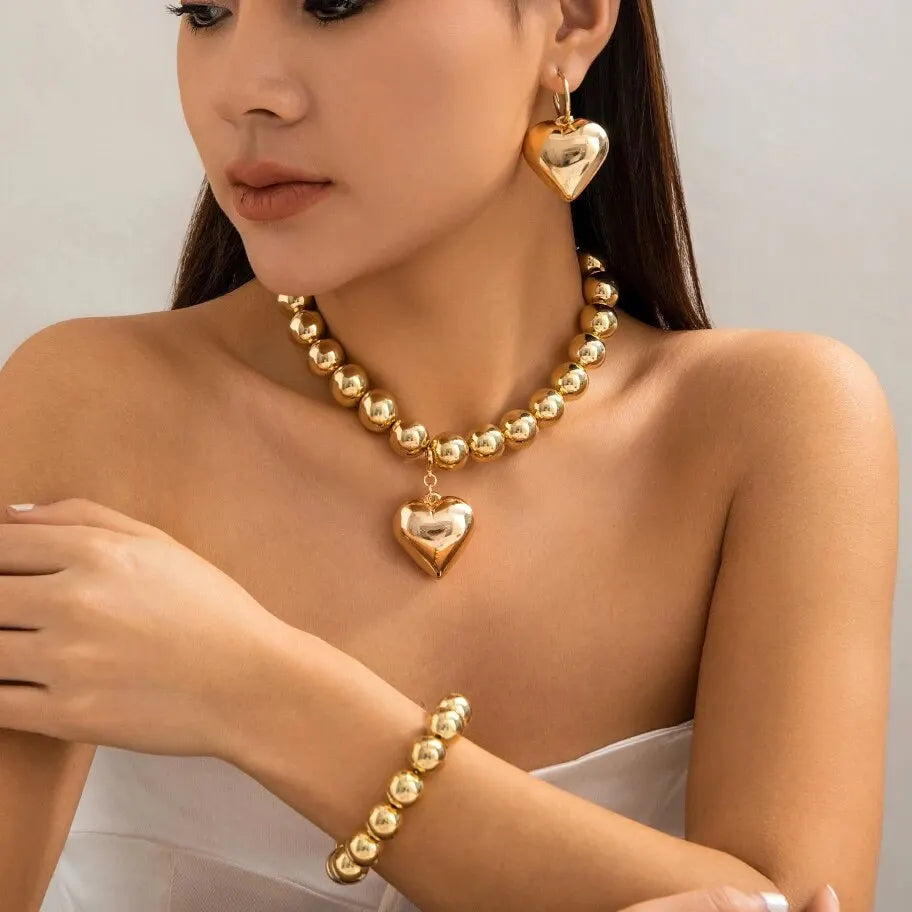 3Pcs Punk Love Heart Pendant Choker Necklace Bracelet for Women