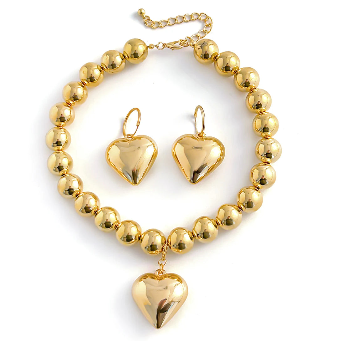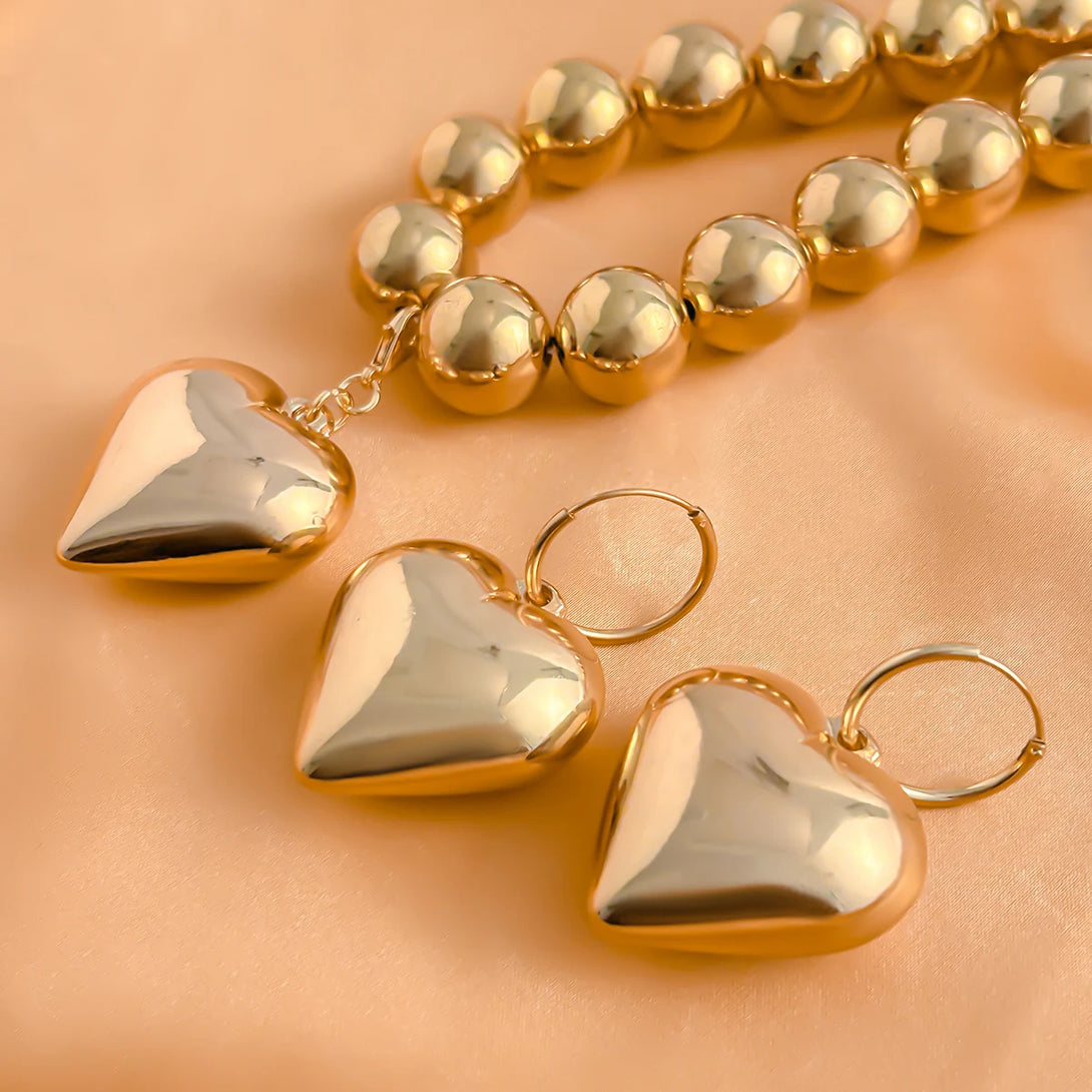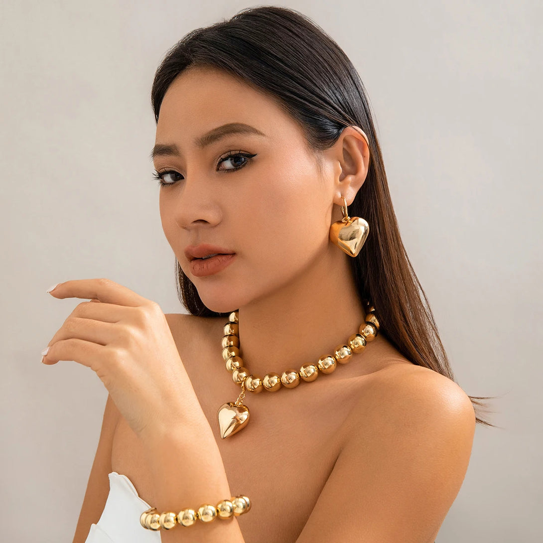 3Pcs Punk Love Heart Pendant Choker Necklace Bracelet for Women Vintage Piercing Drop Earring Grunge Jewelry Set Steampunk Men