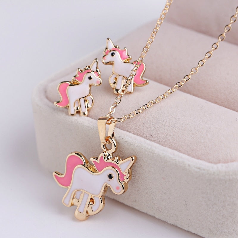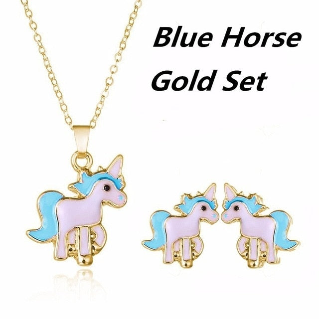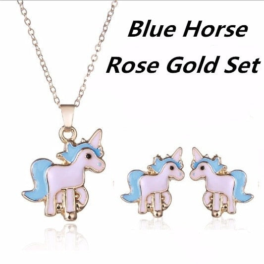 3PCS/Set Unicorn Jewelry Sets Cute Earrings Necklaces for Women Girl Animal Decorations Kits Gifts Wedding Party