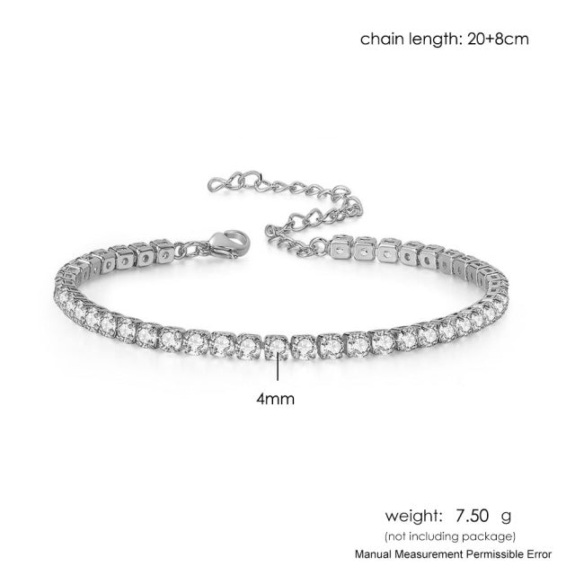 Anklets- 4MM Zircon Tennis Anklet For Women Dazzling Bracelet on The Leg Chain Sexy Decoration on Foot Fashion Jewelry