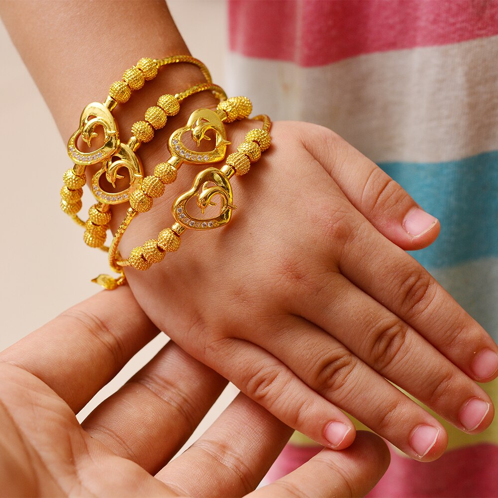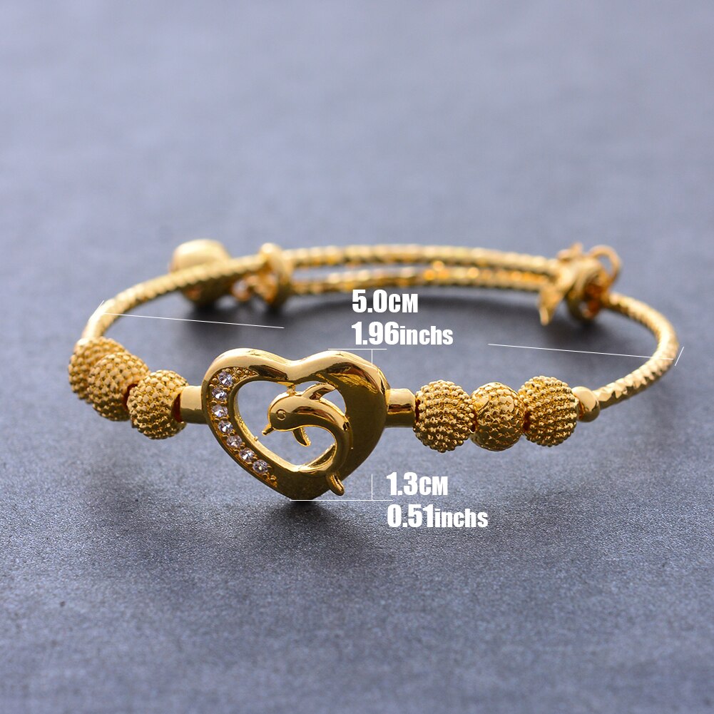 4Pcs Dolphins Baby Bead Bangles for Baby Girl Gold Color Dubai Bride Wedding Bracelet