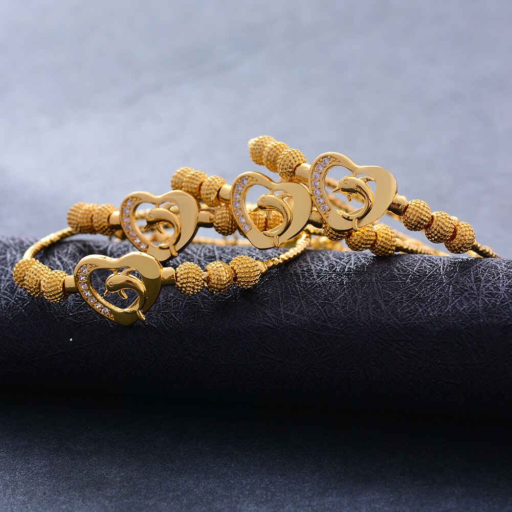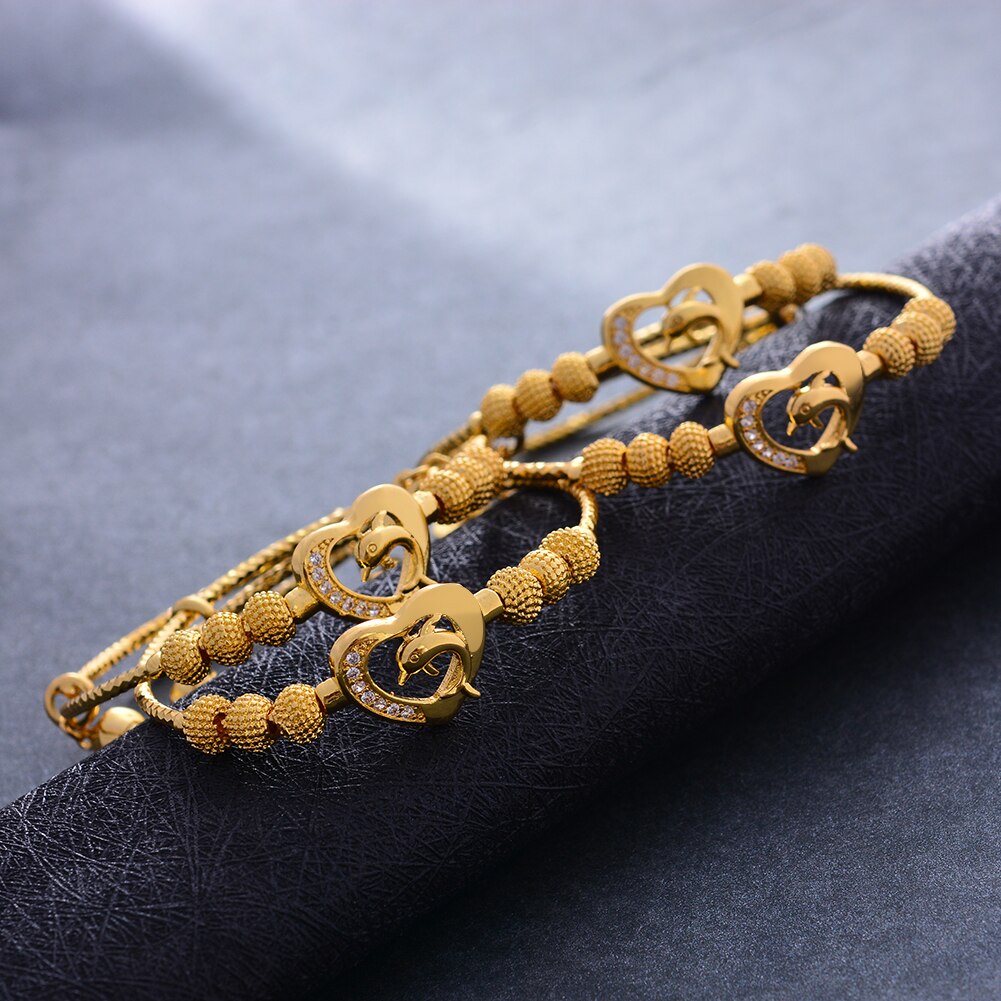 Afraic Jewelry- 4Pcs Dolphins Baby Bead Bangles for Baby Girl Gold Color Dubai Bride Wedding Bracelet African Charm Bracelet Arab Jewelry
