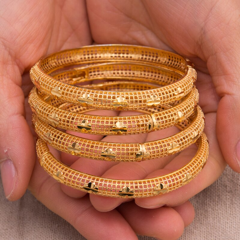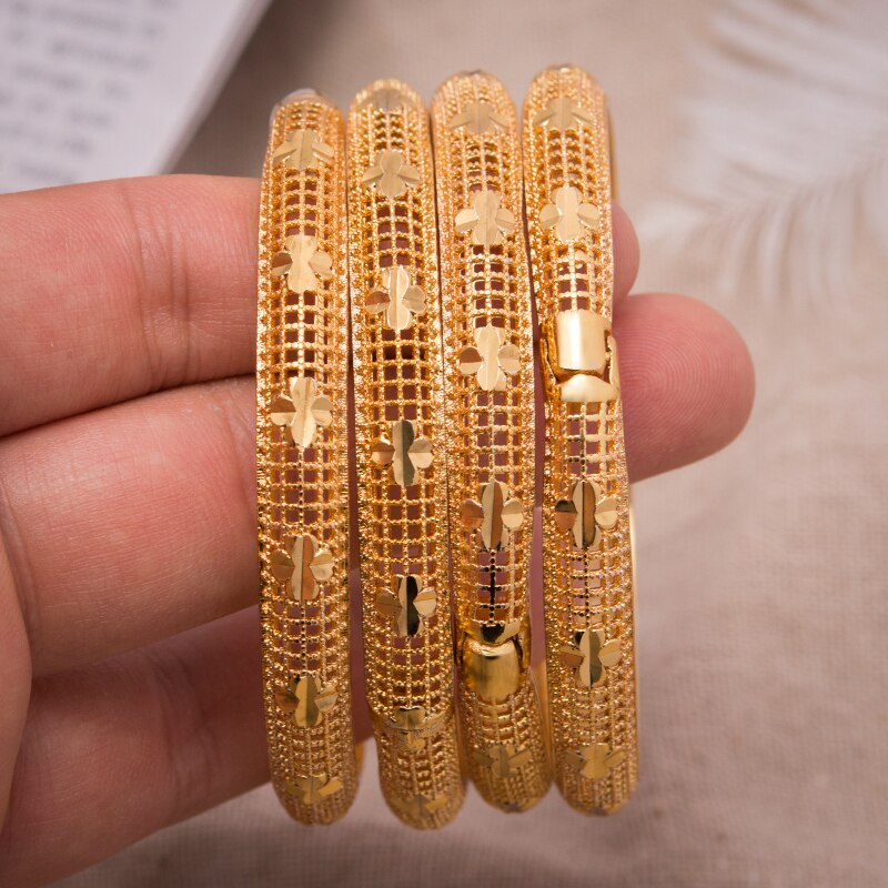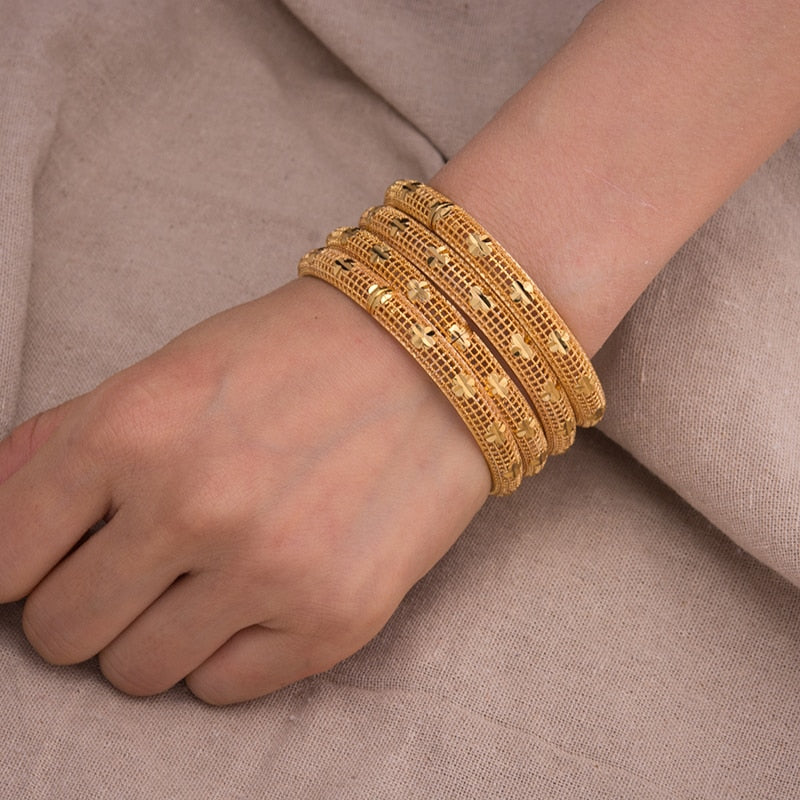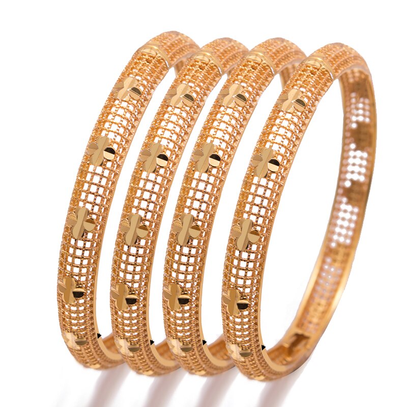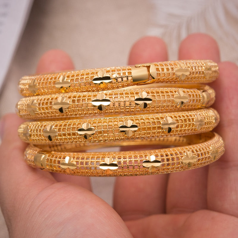 Afraic Jewelry- 4Pcs Dubai Gold Color Jewelry Bangle Bracelet for Women Girl Star Bangle Wedding Bangles & Bracelets Bride Jewelry Bangles Gift