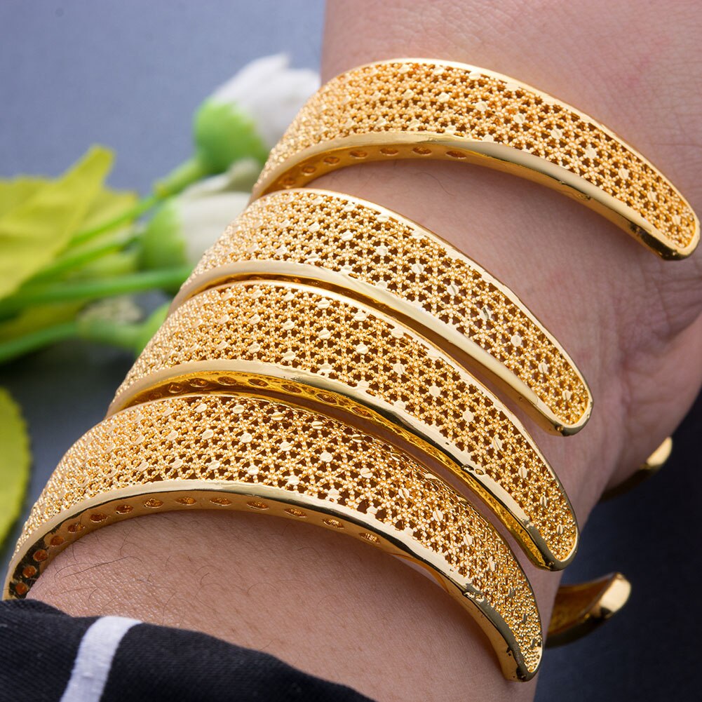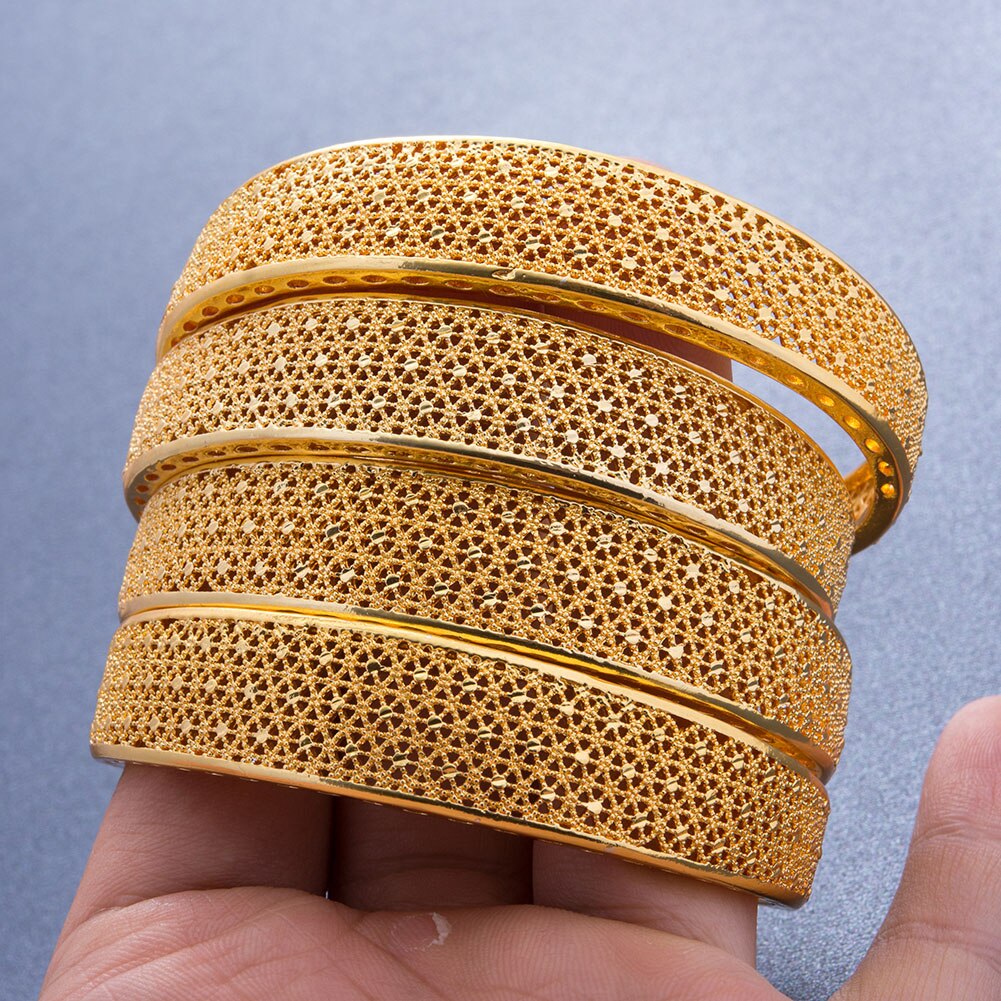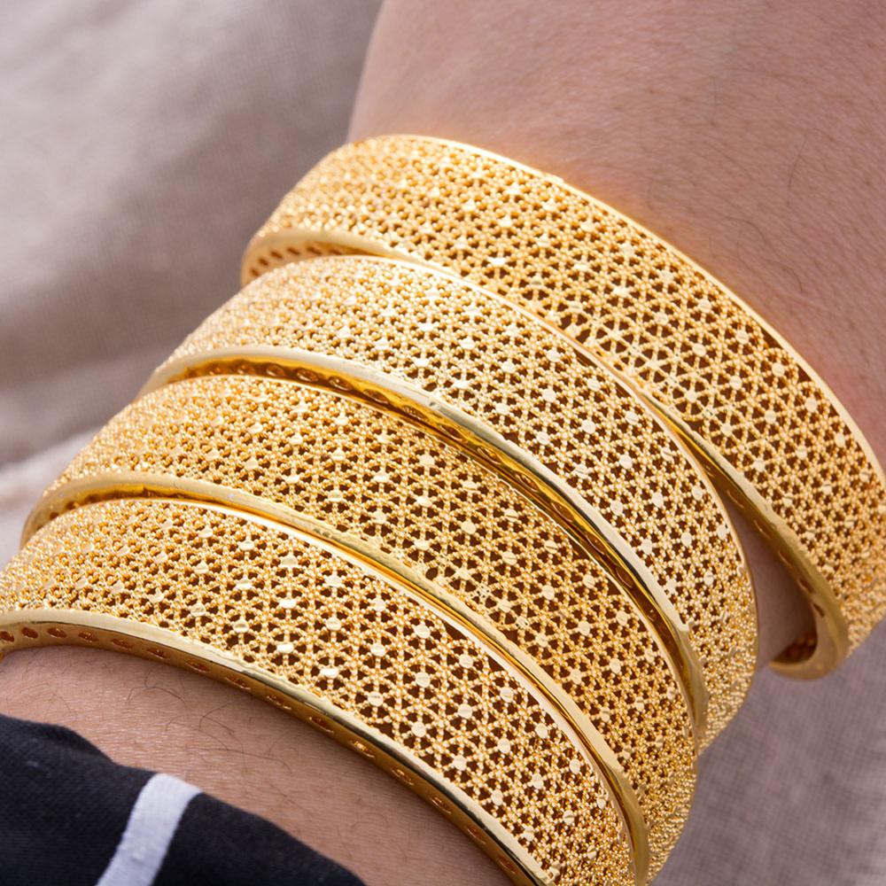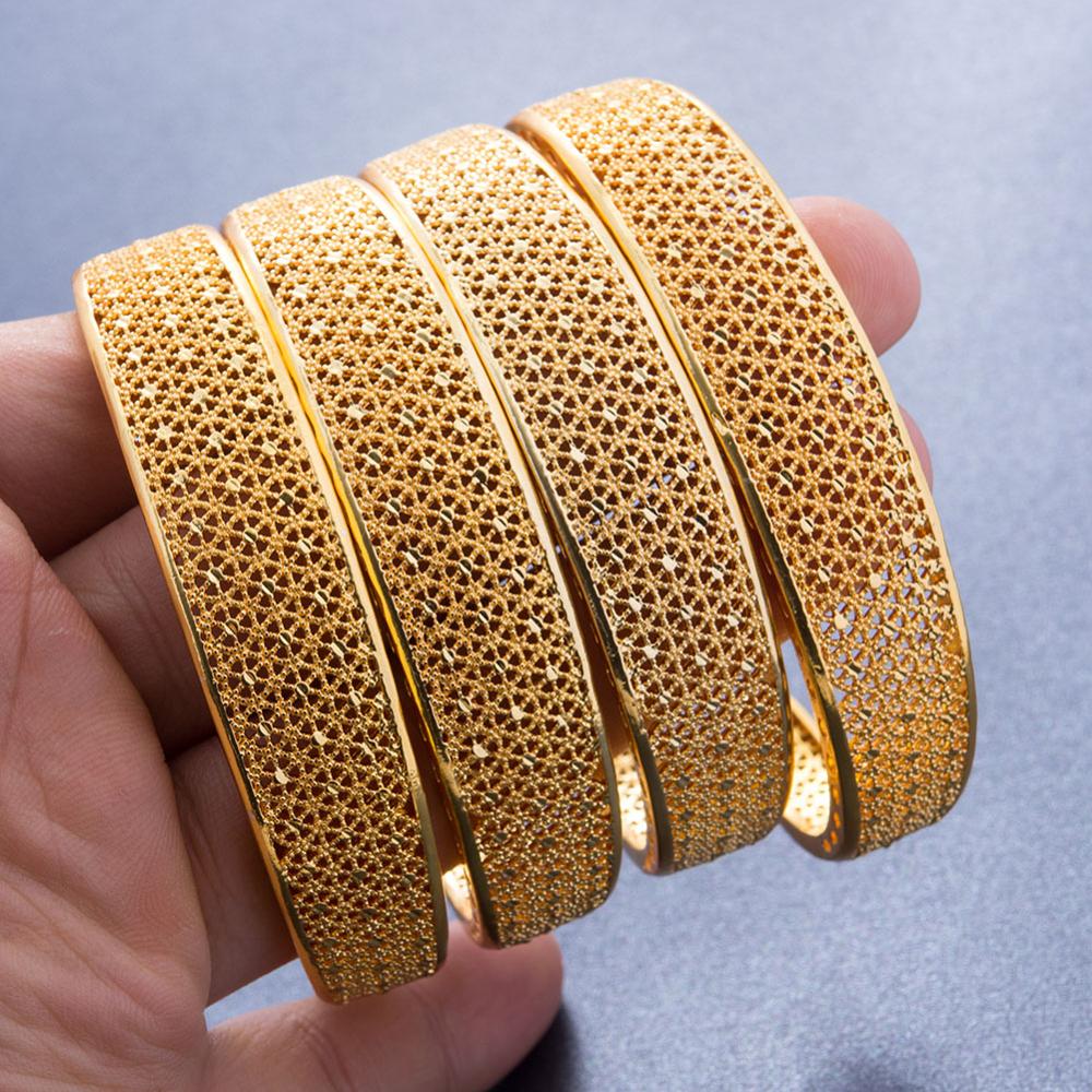 Afraic Jewelry- 4Pcs/lot 24K Dubai Gold Color Bracelet Bangles For women Wife African Bridal Wedding Gifts Party Africa Bracelet Jewelry