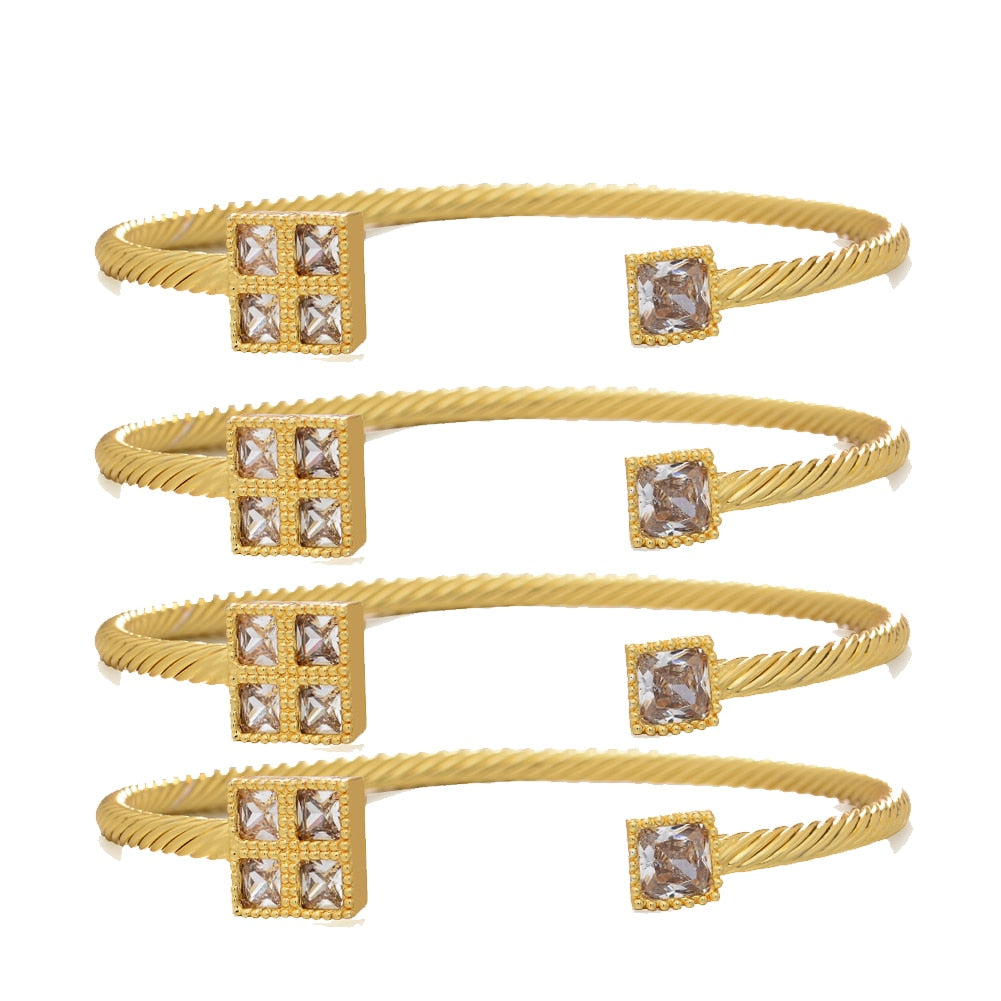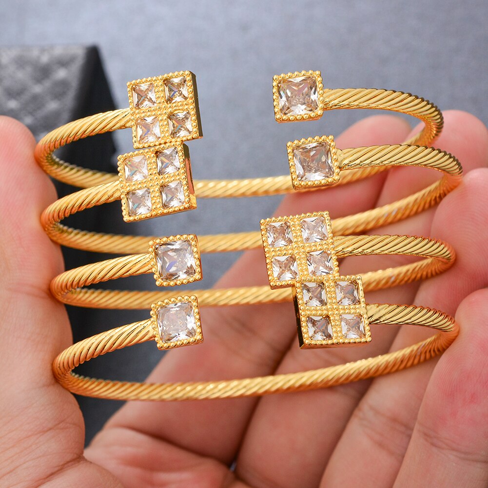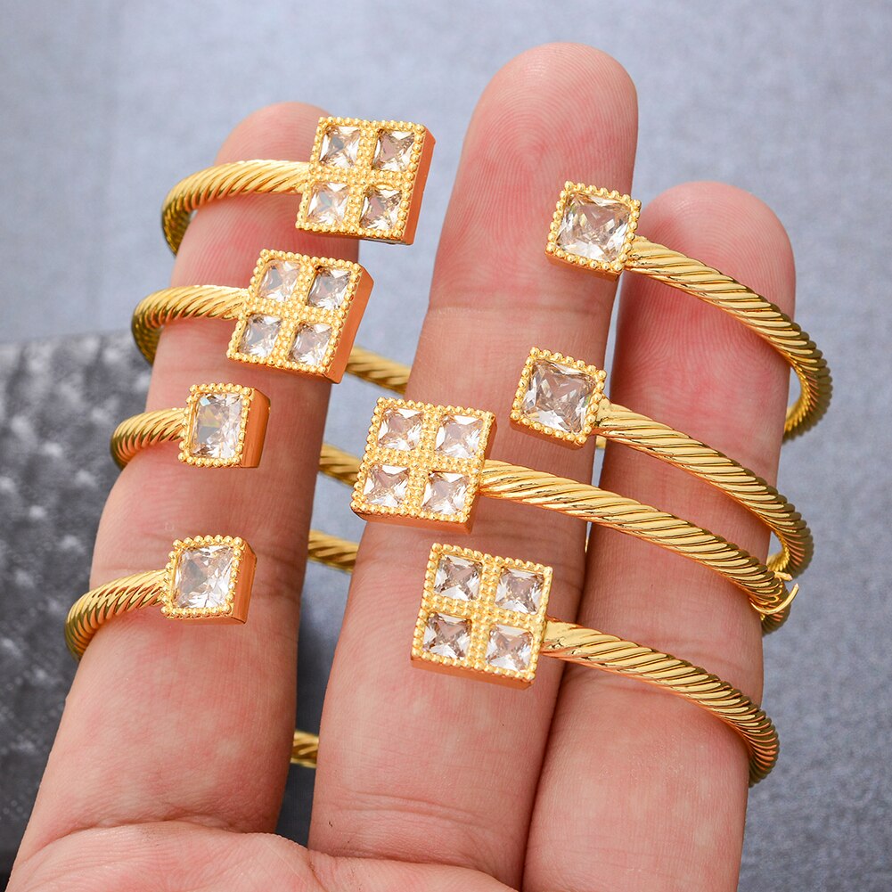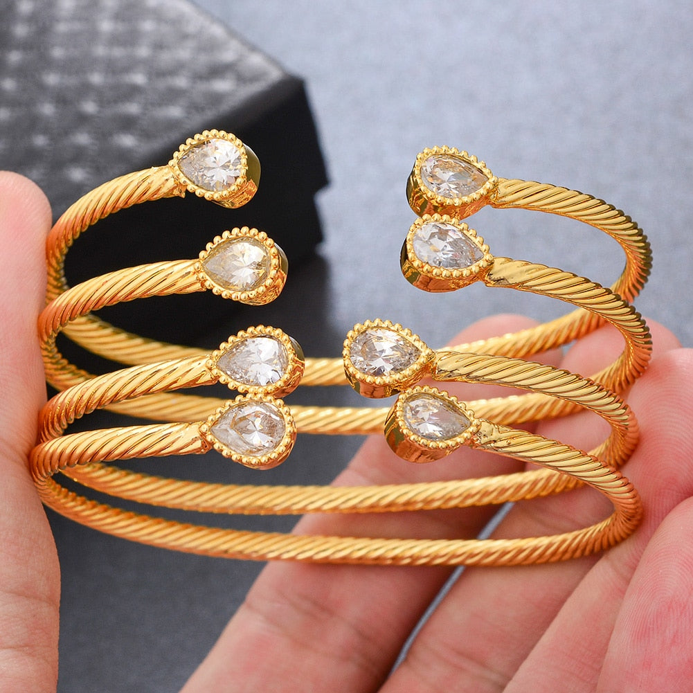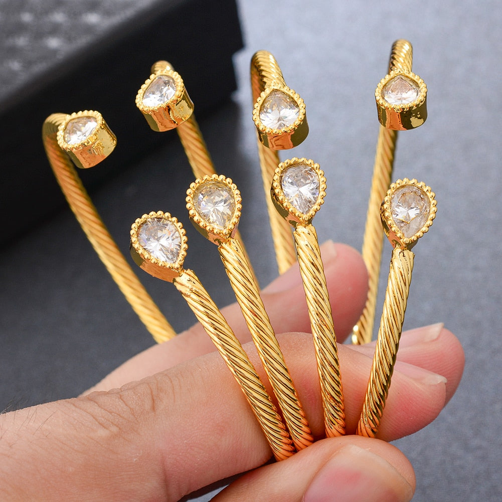 Afraic Jewelry- 4pcs/lot Bangle Zircon bangles bracelet Gold Heart Indian Free Size African 24k Dubai Women Wedding Party Gifts