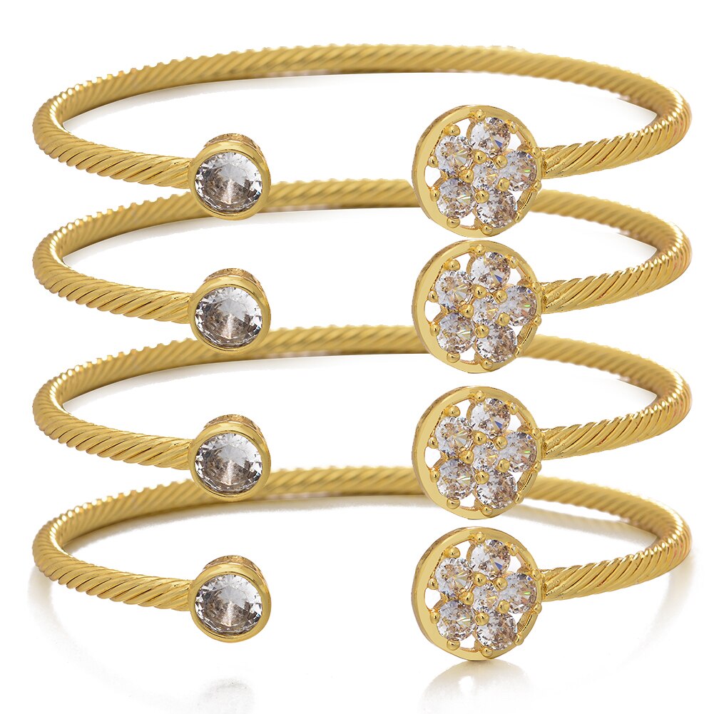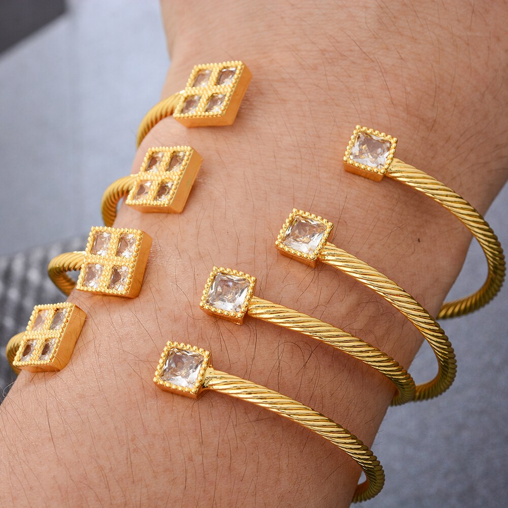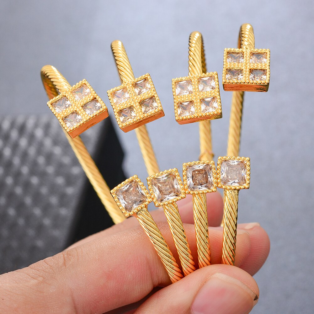 4pcs/lot Bangle Zircon bangles bracelet Gold Heart 24k Dubai Women Wedding Party Gifts