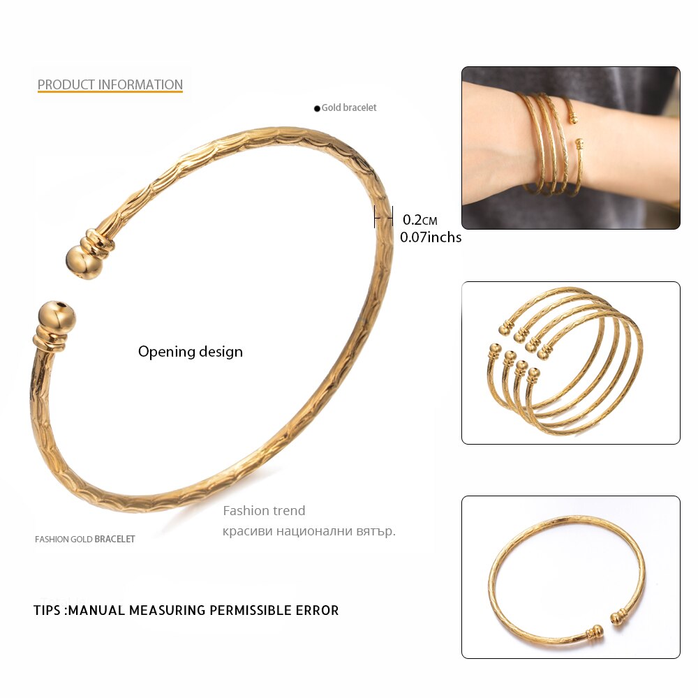 4pcs/lot can open girl Ethiopian Bangle Gold Color Dubai Bride Wedding Africa Arab bracelet