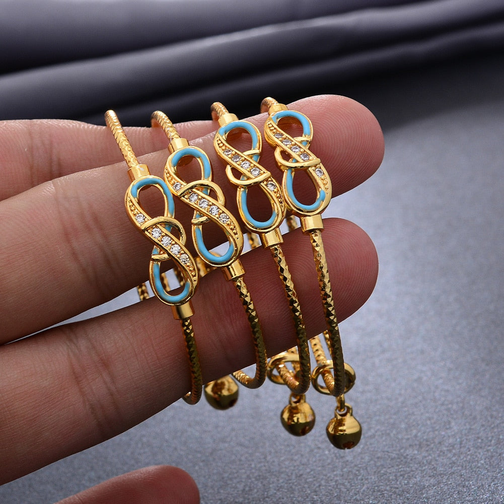 Afraic Jewelry- 4pcs/Lot Dubai Gold Baby Bangles Child Bracelet For Kids African Children Jewelry Baby Mideast Arab Cute Wedding Party Gift