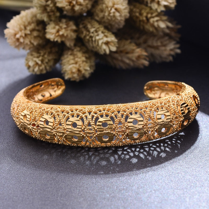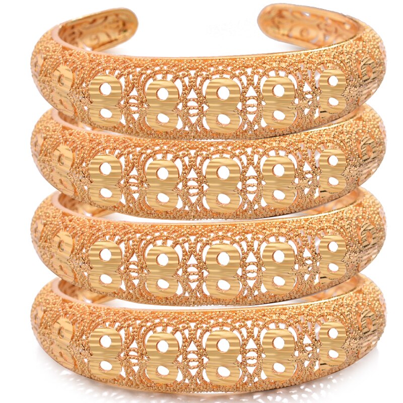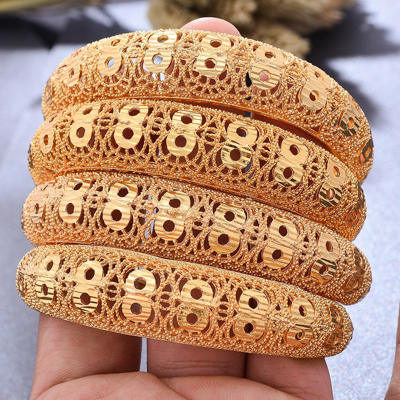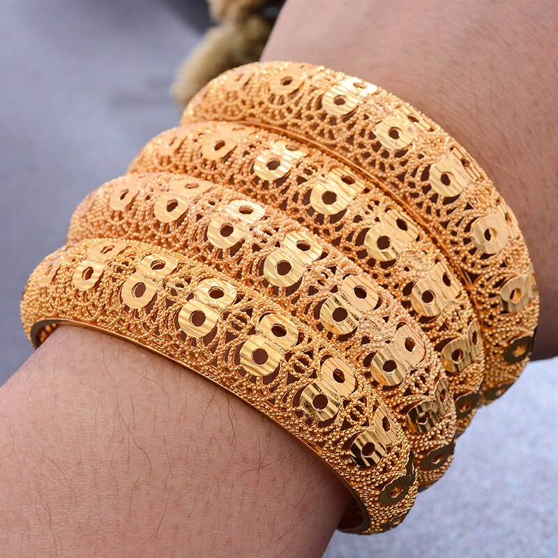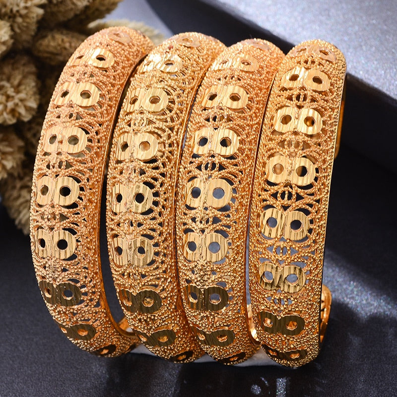 Afraic Jewelry- 4pcs/lot Dubai Wedding Gold Color Bangles For Women Girl Wife Dubai Bride Africa Bracelet Africa Bangles Arab Jewelry Gold Charm