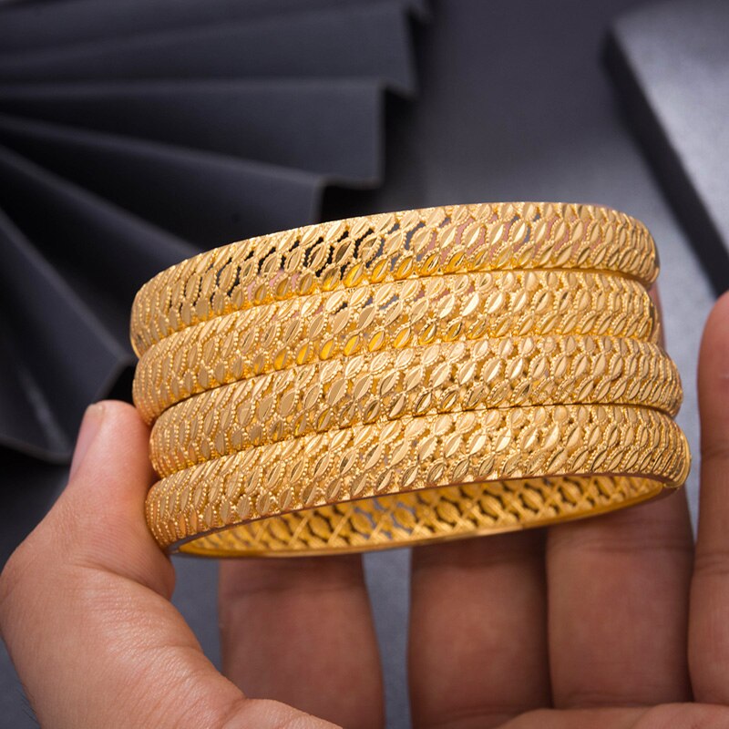 Afraic Jewelry- 4Pcs/lot Fashion women wedding Africa Gold Color Bangles Jewelry Brand Fashion Jewelry Copper African Gifts