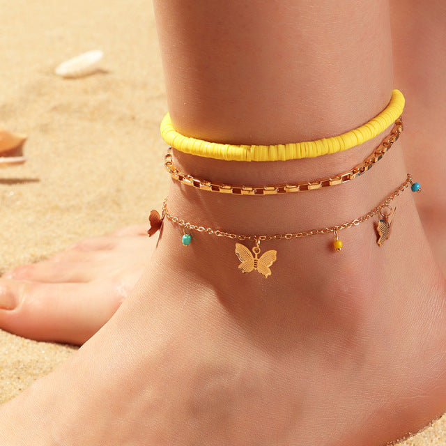 Anklets- 4PCS/SET Bohemian Color Multilayer Anklet Women Mixed Star Moon Cactus Lock Pendant Summer Beach Casual Jewelry Friendship Gift