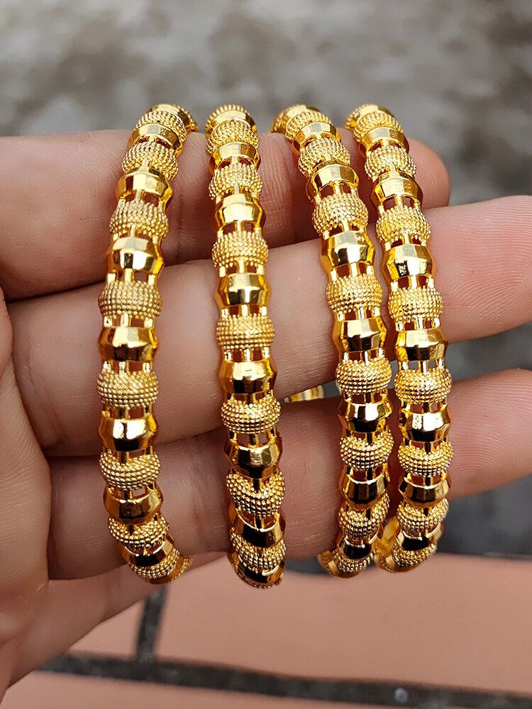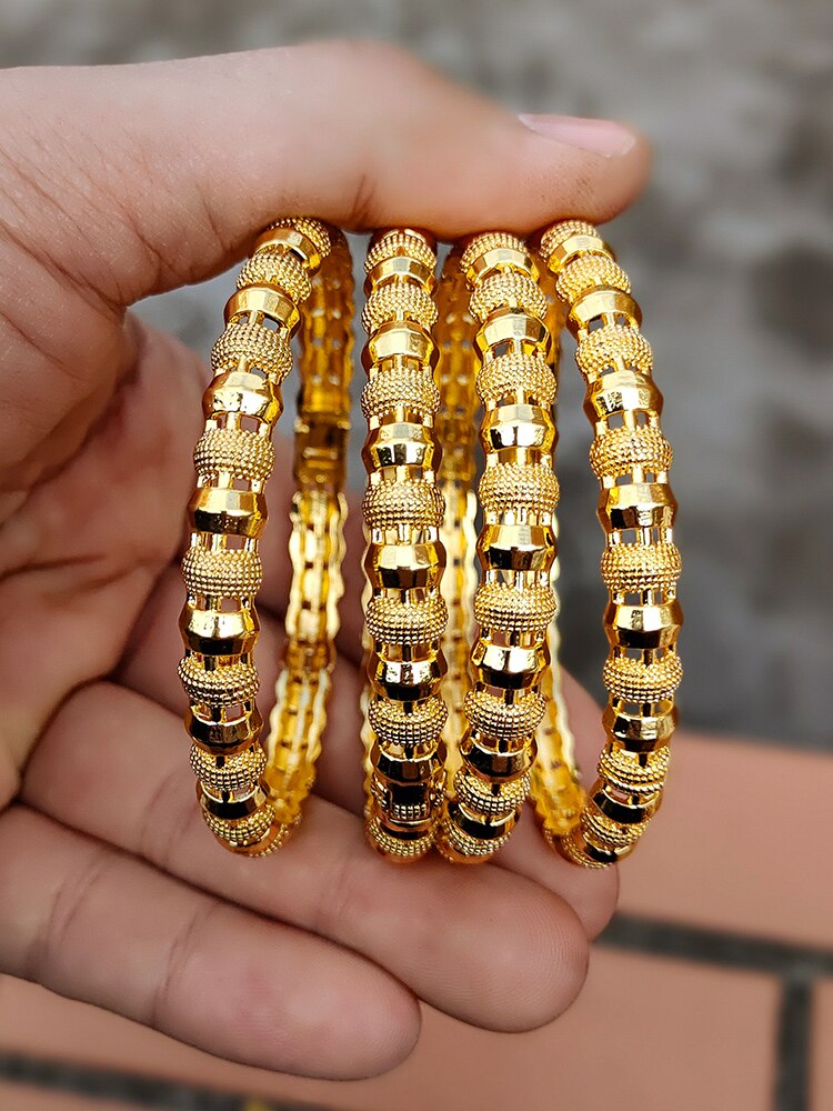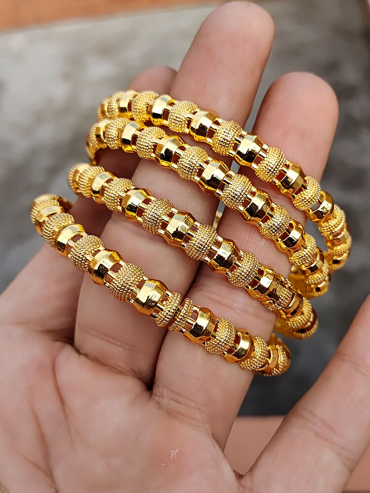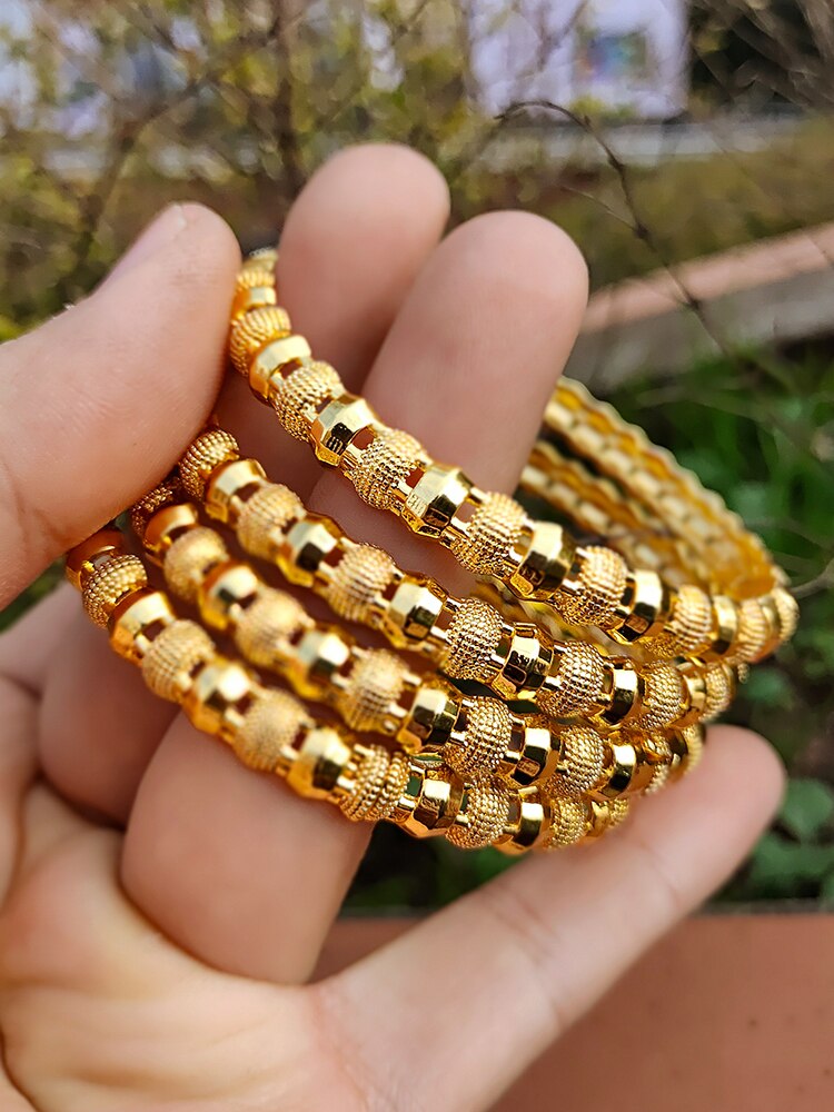 Afraic Jewelry- 4Pcs/Set Dubai Bangles for Women Middle East Gold Bangles Ethiopian Saudi Arabia Mesh Bracelets Wedding Jewelry African Gifts