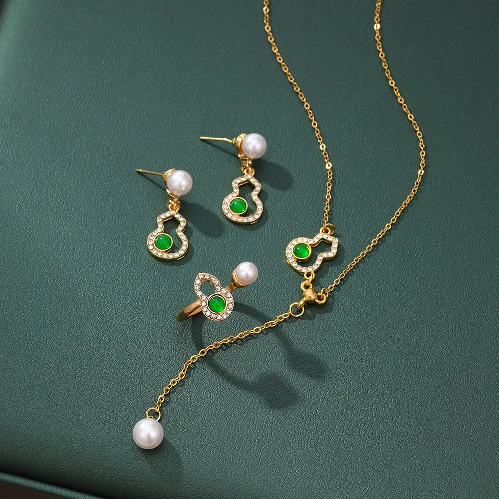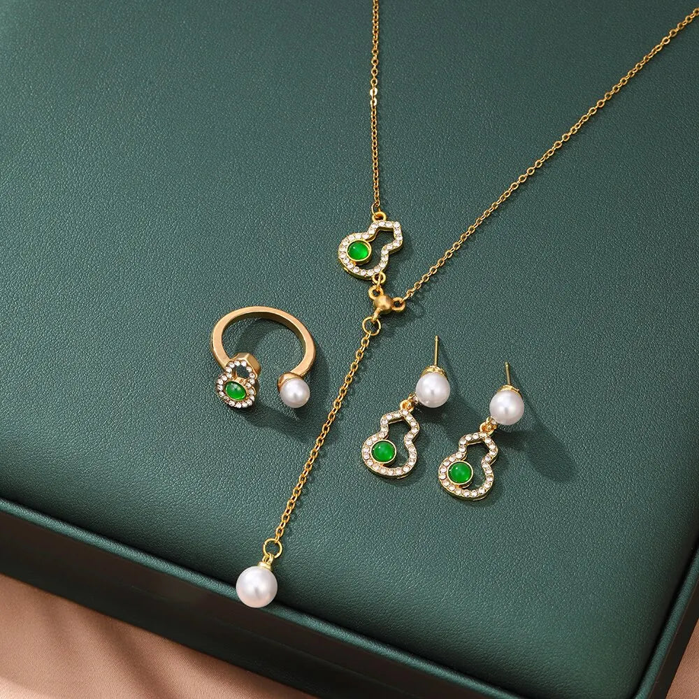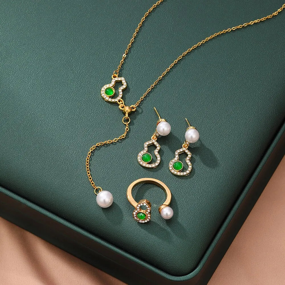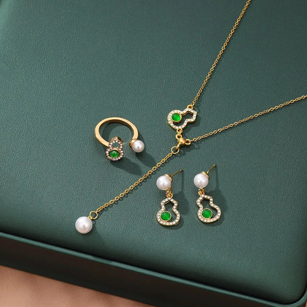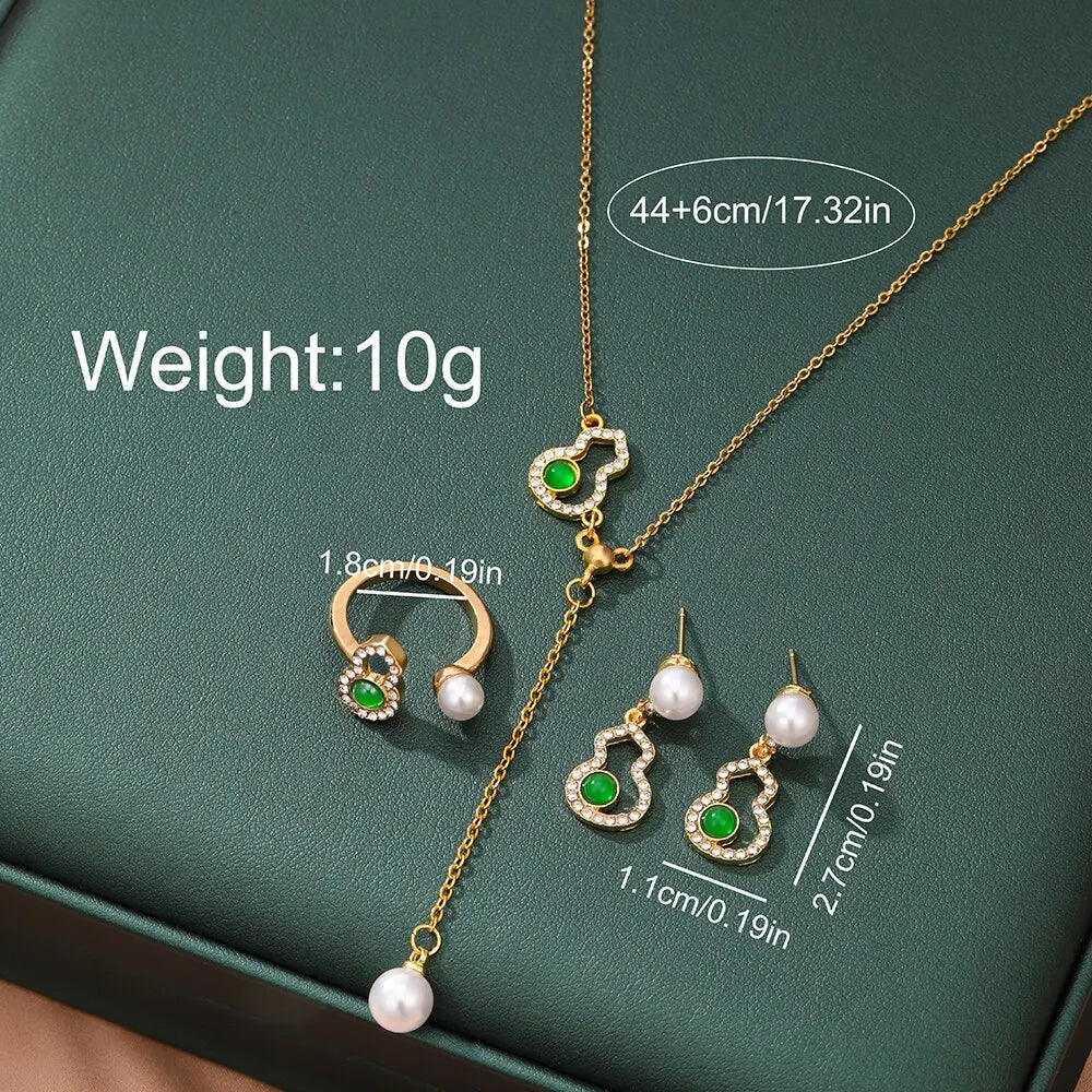 4PCS Sets Exquisite Pearl Rhinestone Necklace Earrings Ring Jewelry Set