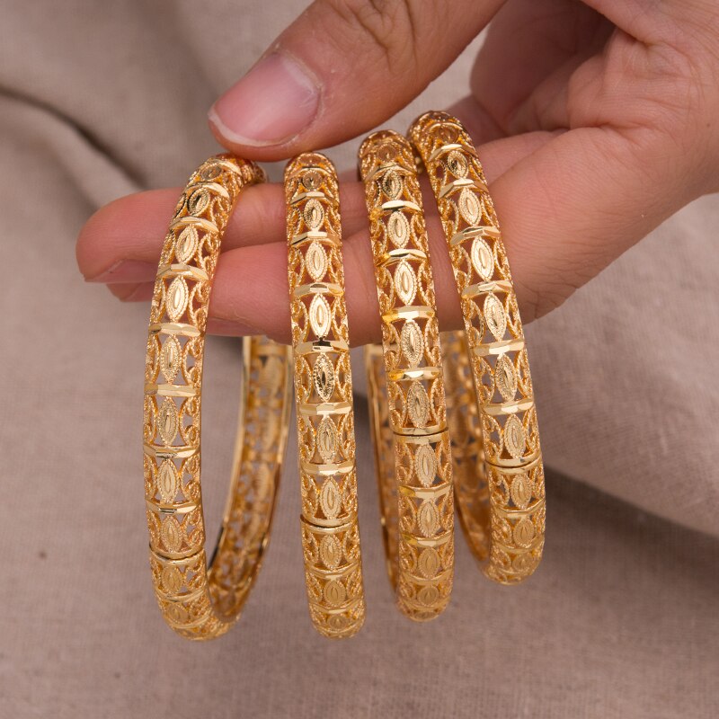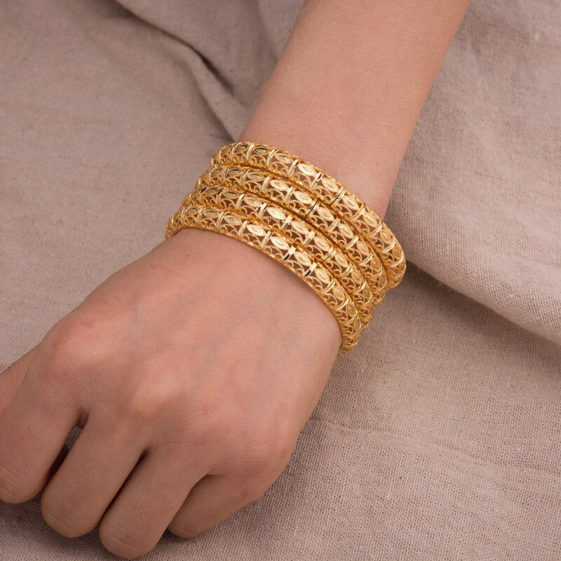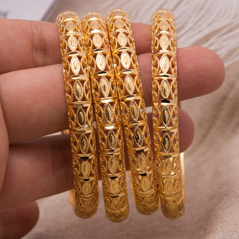 Afraic Jewelry- 4Pcs Trendy Gold Color Bangle Bracelets for Women Gold Copper Bangle Bracelet Middle East Dubai Africa fashion Bangles Jewelry