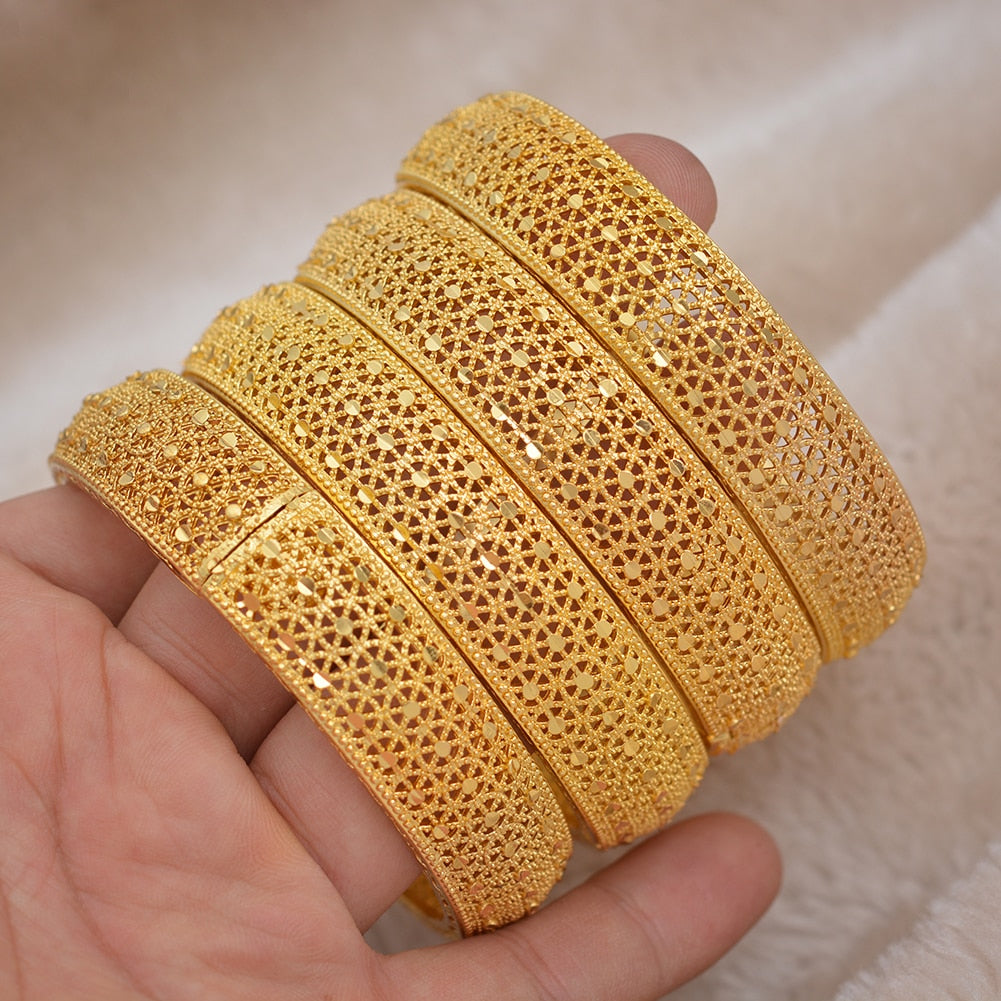 Afraic Jewelry- 4pcs Women Bangle Gold color Bracelet&bangles for women Dubai France Spain bride wedding bracelet Arab middle east
