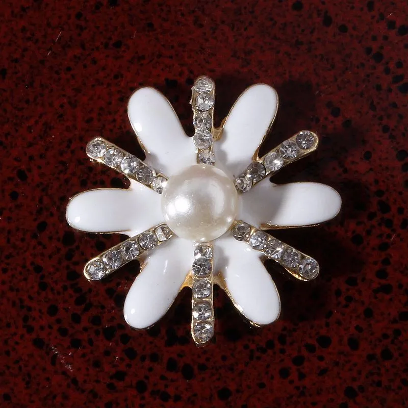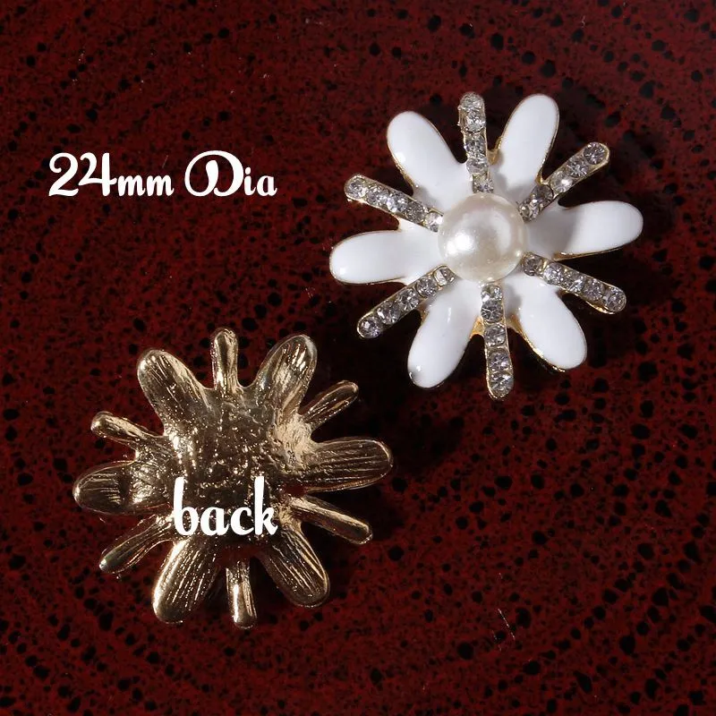 50pcs/lot 24MM Gold Vintage Cute Daisy Crystal Pearl With Rhinestone Buttons