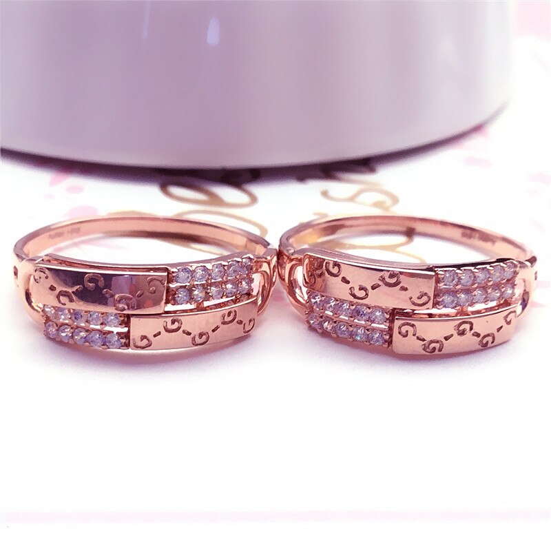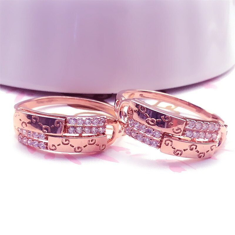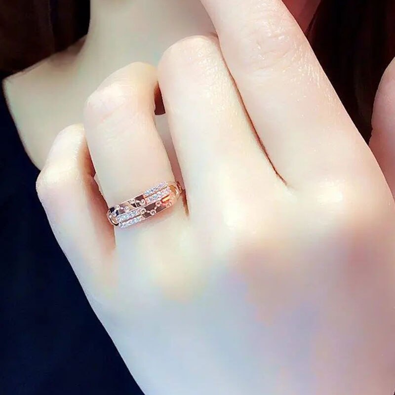 Cocktail Ring-585 Purple Gold Glossy Rings for Women Adjustable 14K Rose Gold Encrusted Crystal Glitter Classic Wedding Party Jewelry